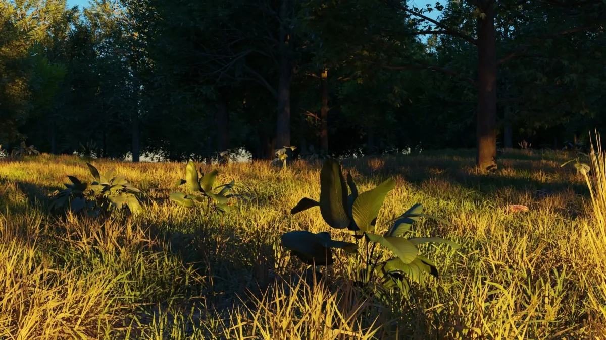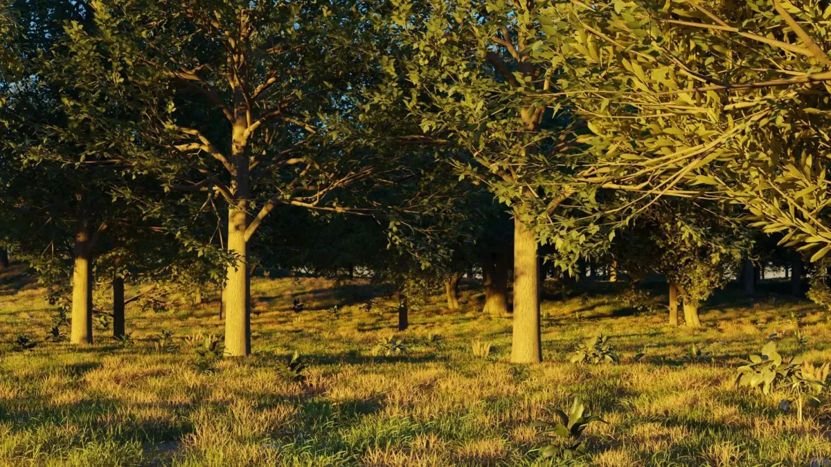 Detailed 3D model of a realistic forest in August