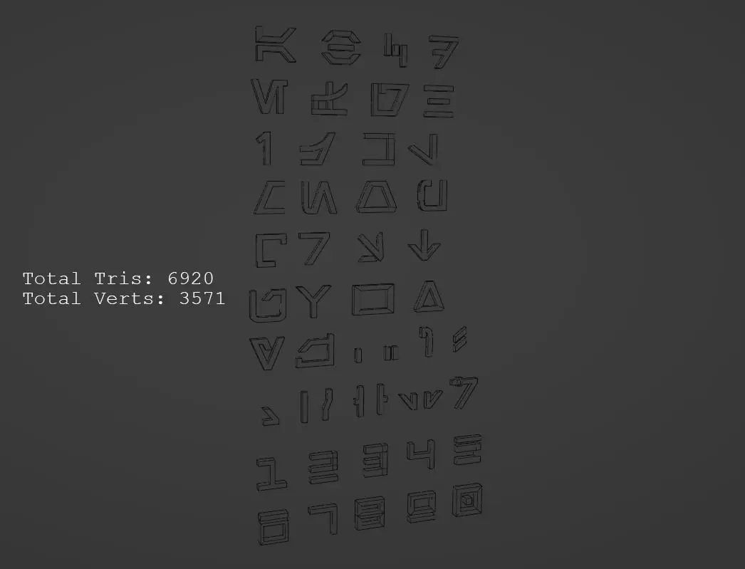 Create your own low poly aurabesh signs with this canon set of Aurabesh alphabet characters and punctuation marks.