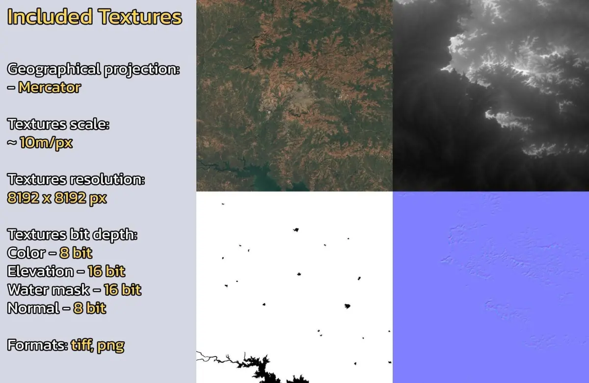 Warning: minor clouds/artifacts may be present on the diffuse color satellite texture due to the nature of the dataset. Check product images.