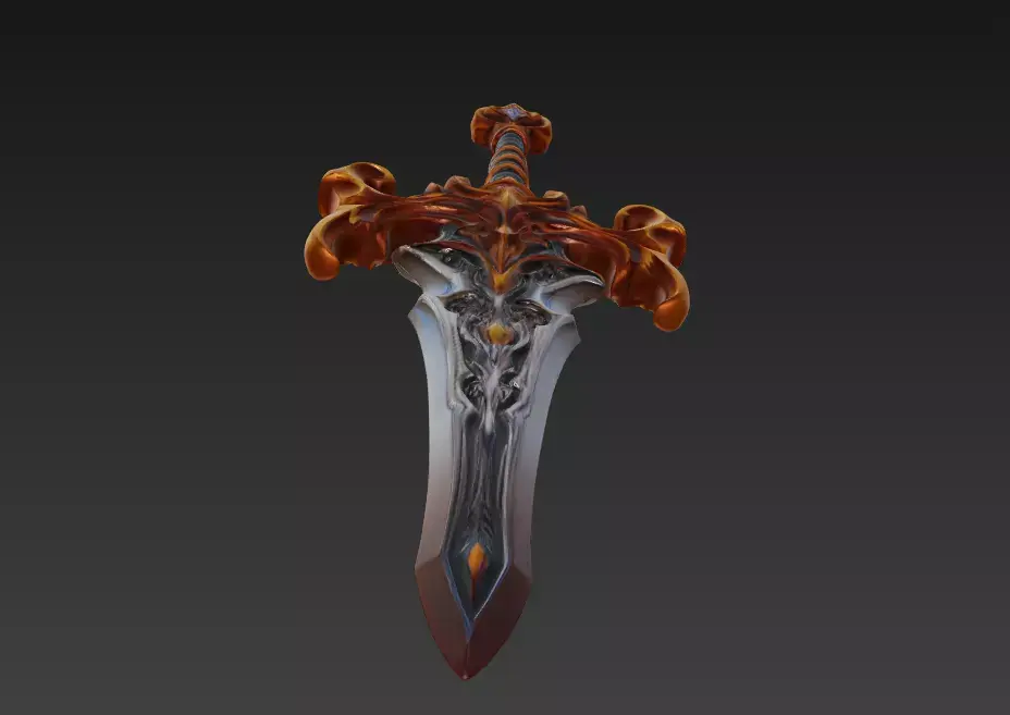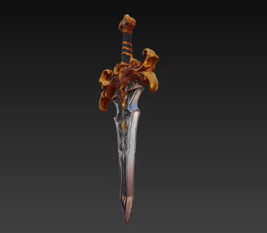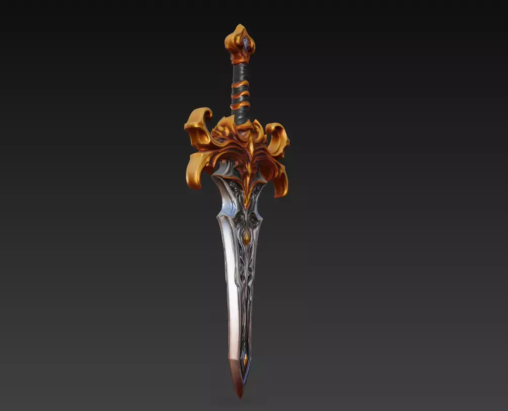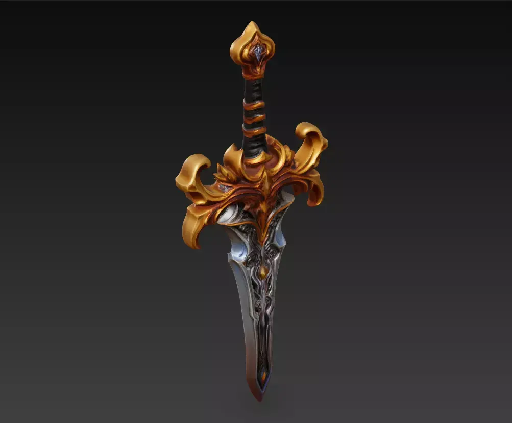 With intricate blade carvings and a glowing metallic sheen, this model brings cinematic depth and high realism to fantasy weapon collections.Sculpted in high resolution (50K+ polygons) for pristine quality and optimized for both CGI rendering and 3D printing.