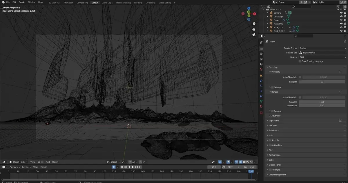 Blender 2.76Aurora borealisIn the .blend file you can find many textures. The mountains have been generated with ANT plugin for Blender. Note that the final render is given by the combination of many nodes in the Blender compositor.