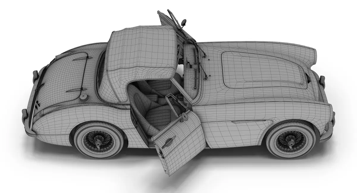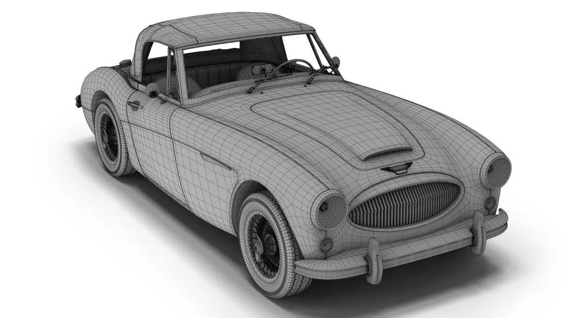 Detailed 3D model of an Austin-Healey 3000 Mark II.