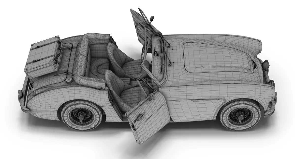 Detailed 3D model of an Austin-Healey 3000 Mark II.