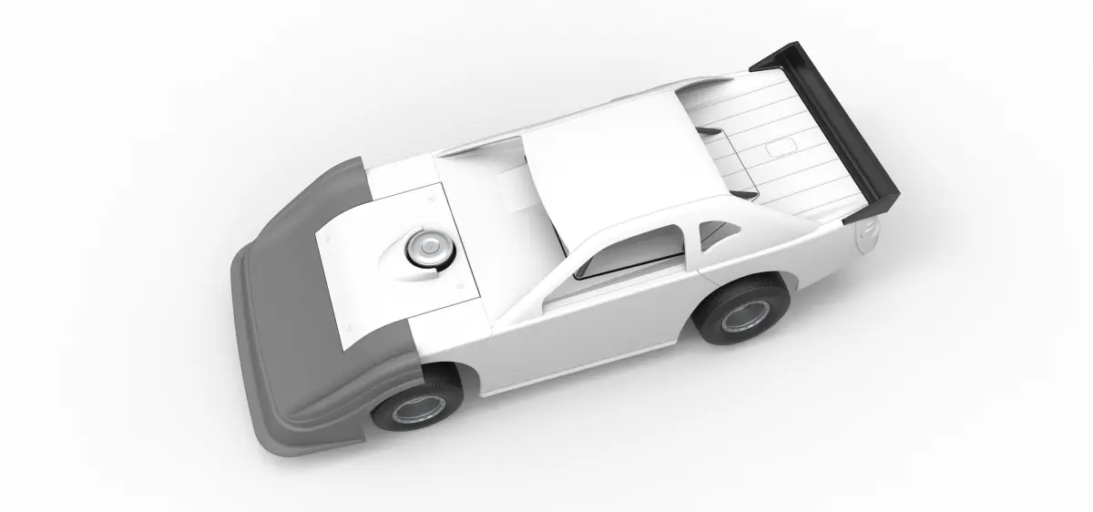 The model consists of parts: Air filter cap, Air filter, Body, Engine main part, Engine top part, Front rims, Front tires, Hood, Left exhaust pipes, Left exhaust tube, Radiator, Rear rims, Rear spoiler, Rear tires, Right exhaust pipes, Right exhaust tube, Rim covers, Seat part 1,2, Shell part 1,2, Shifter, Spacer, Steering wheel, Tank.