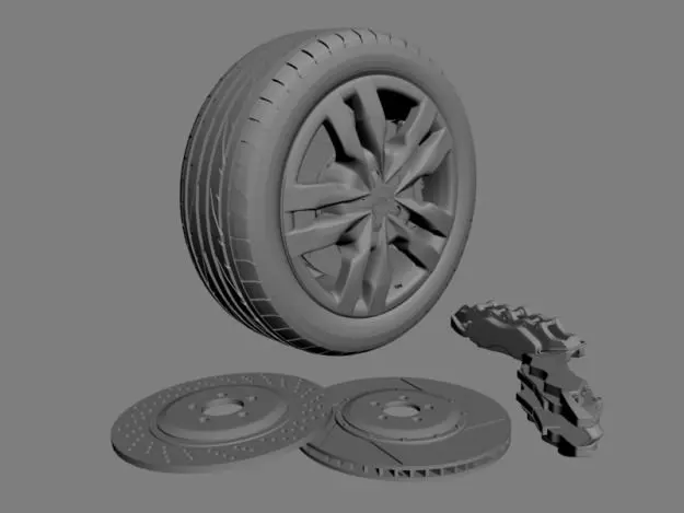 3D model of audi TTRS rim with tire and breakes made in 3ds max 2009 and rendered in V-Ray 1.50