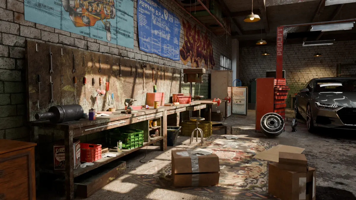 Realistic Garage Workshop Model garageshopcarautorepairrepairinterior3drealtimequalitytoolscartoolsgardentoolsvintagehangararchitecturearchitecturalrealisticworkshopenvironmentvintage carother