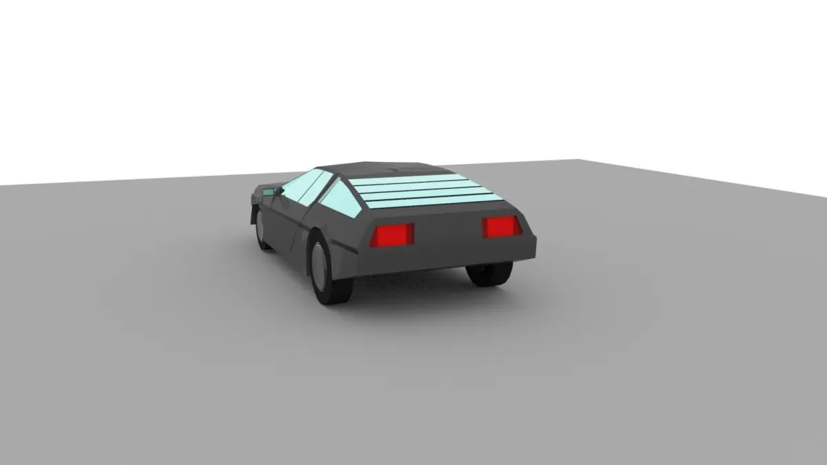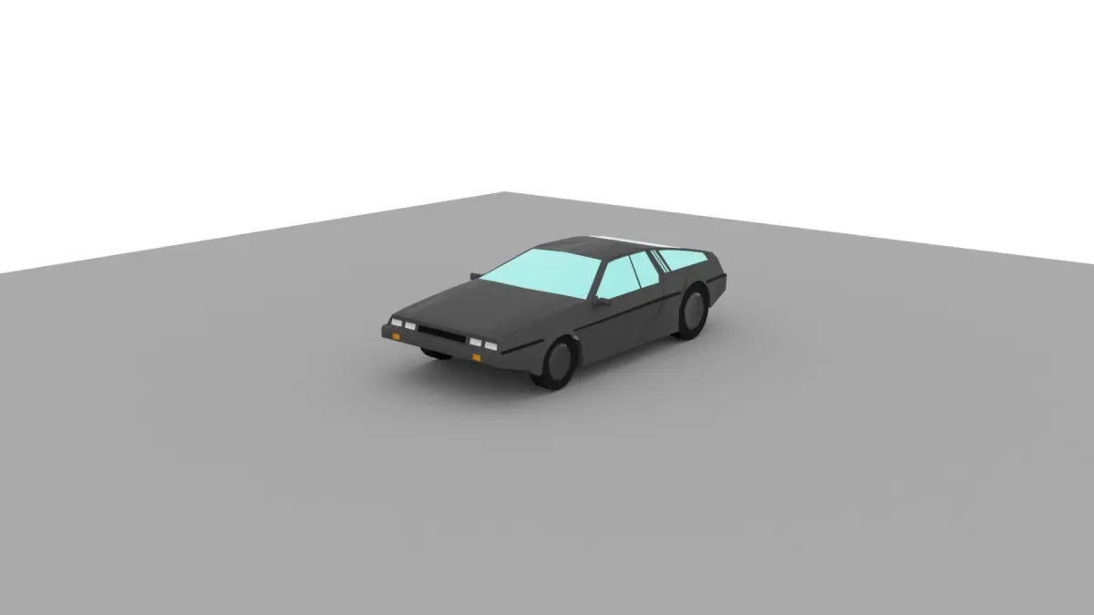 Low poly car (DeLorean) , grey color, textured in maya. headlights and taillights, wheels separated from the main Maya for animation. Good to do an animation and it is not smoothed.