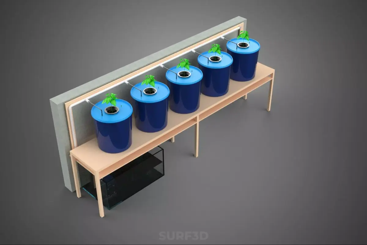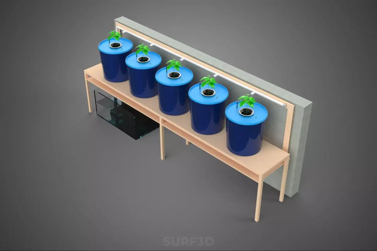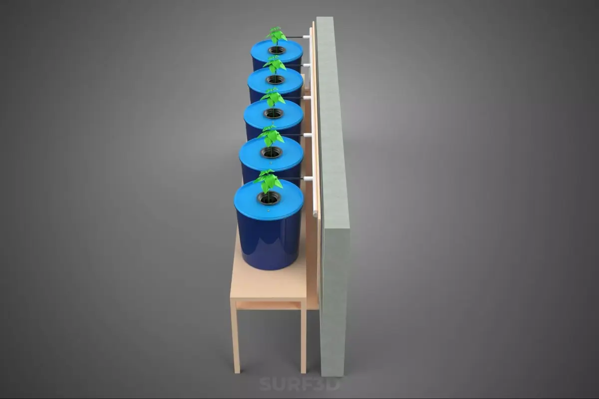 - Delivery Mechanism: The system utilizes a main pump that draws the nutrient solution from the reservoir and distributes it via PVC piping to individual drip emitters located in each Bato bucket.