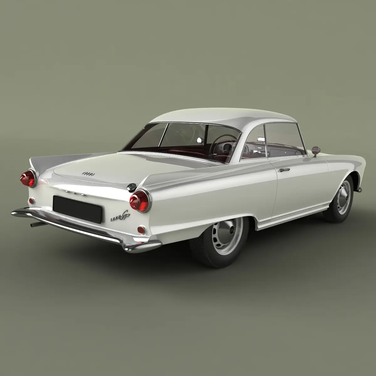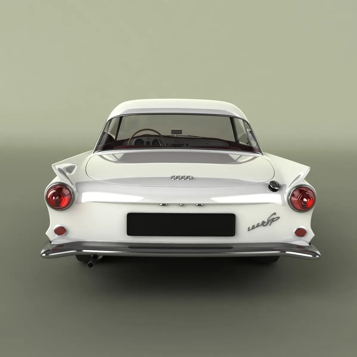High detailed, correctly scaled model of 1960 Auto Union 1000 SP coupe. Originally created with 3ds Max 8. Rendered with V-Ray, files with standard materials are included. Unit system is set to metric units. Model is built to real-world scale.