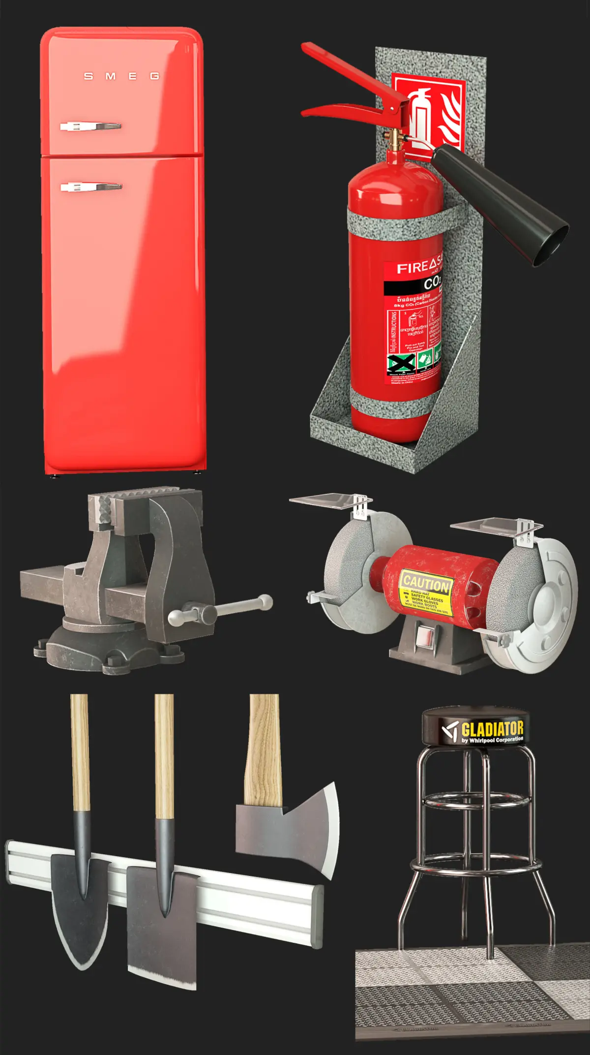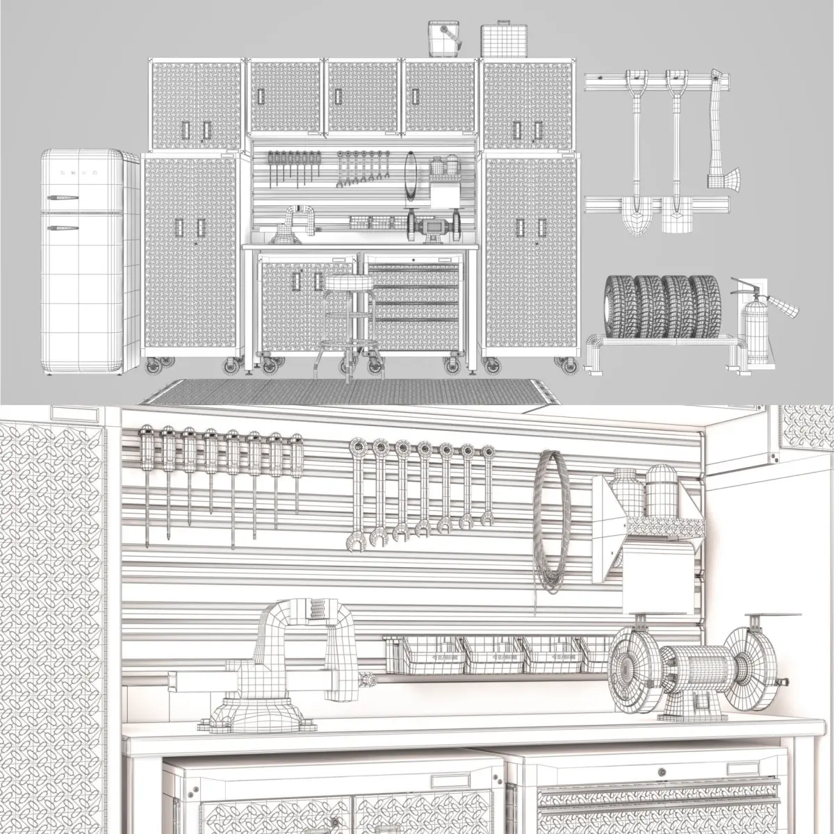 Car repair shopGarage furniture and premium storage systems from the USASteel Series PremierStatistic 581 915 polys 810 337 verts Turbosmoosh Statistic 1 275 043 polys 1 110 603 verts file: 3ds13 Vray 3.5; Obj and fbxGladiator http://gladiator-garage.ru/kits SMEG http://www.smeg.ru/product/fab30rr1/