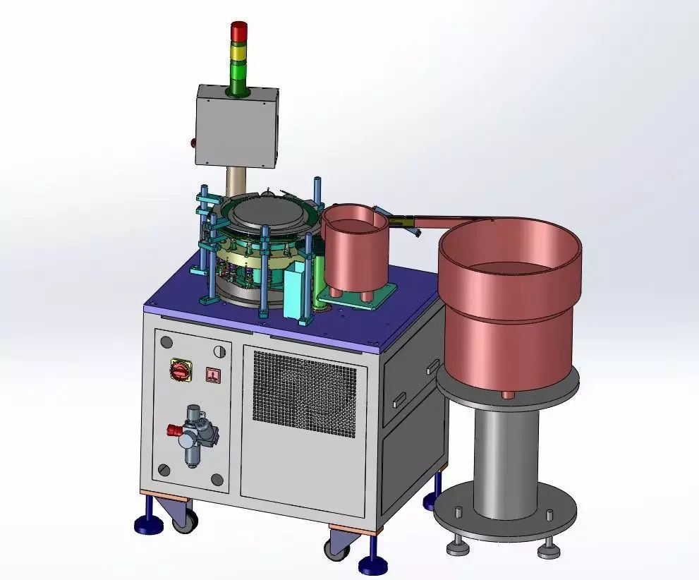 This 3D model features a detailed piston assembly machine designed specifically for perfume pump production. The model reflects a mechanical CAM-based system known for its high precision and productivity. Integrated functions include automatic feeding, assembly, and detection. The machine is equipped with a high-performance PLC, touch screen interface, and energy-efficient frequency control. Safety is enhanced with full-body self-inspection and illegal operation protection mechanisms. Ideal for use in automation simulations, mechanical design reference, or direct 3D printing of assembly components.