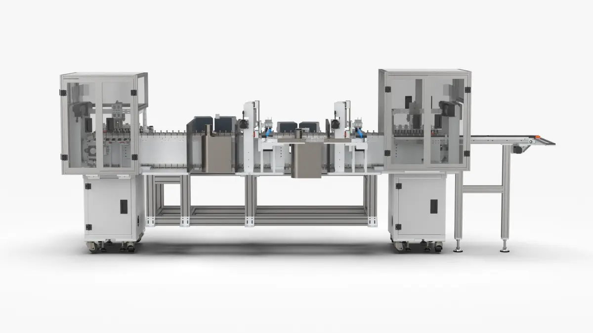 A set of fully automatic X-ray inspection machine 18650 battery inspection machine 10450 battery X-ray inspection machine. The complete set of drawings is the original complete set of 3D model design drawings. This equipment is suitable for products For: 18650 batteries, 10450 batteries, X-Ray inspection machines for various cylindrical batteries, etc., the equipment mainly transports the batteries to be inspected to the X-Ray inspection station through the chain return line for inspection. The transmitter can detect the voltage internal resistance of the battery, the state of liquid injection, and the number of winding layers inside the battery. It can detect various functions through X-ray irradiation. It is also the most high-end testing equipment in China. It is also very stable. When the battery comes in from the conveyor belt, the cell manipulator grabs the product and puts it in the carrier station of the chain return line for secondary positioning, transportation and inspection. The undetected ones will be discharged in the line body. There are two sets of bad discharge mechanism and discharge The final good products of bad manipulators will be collected together, and that is the main function of this device.