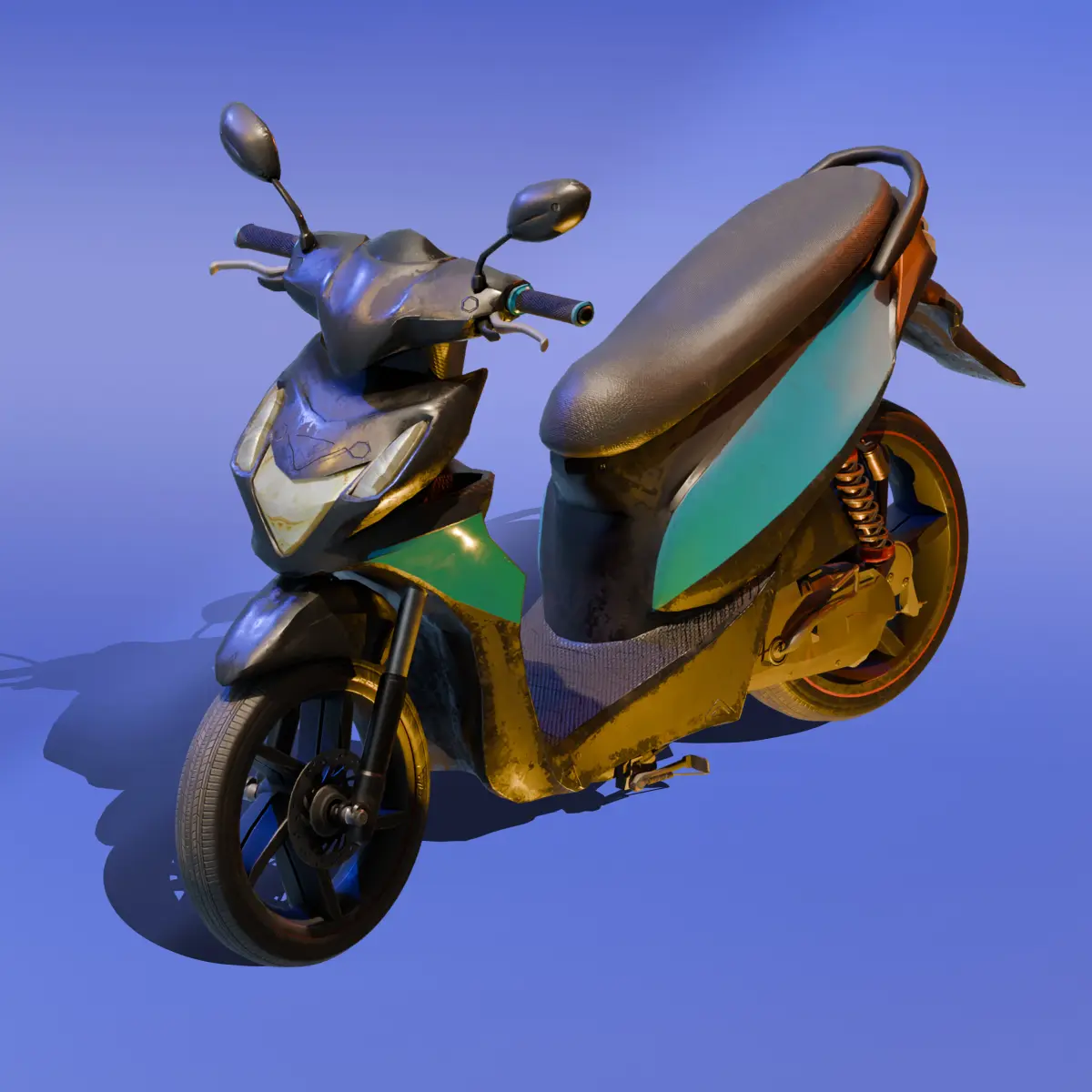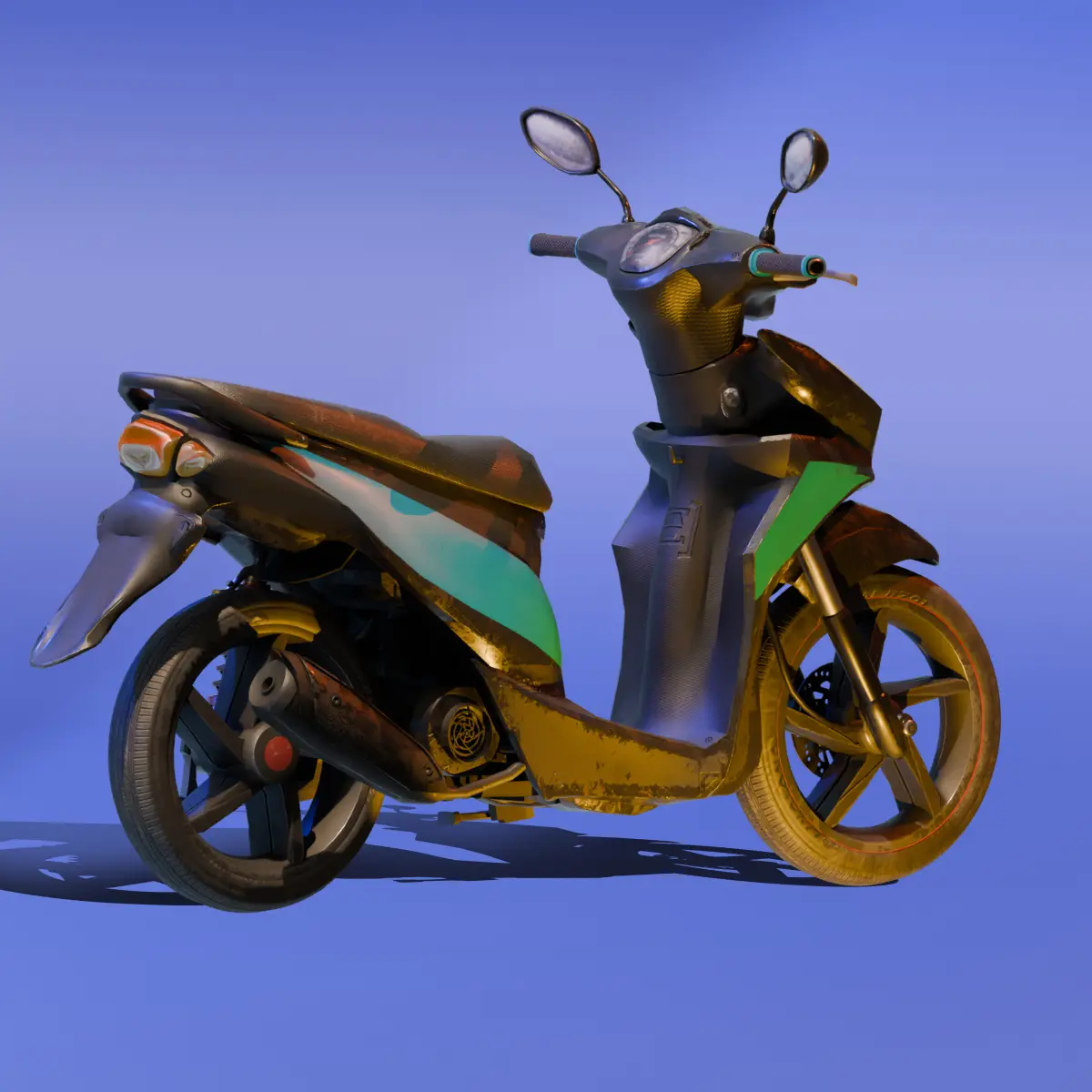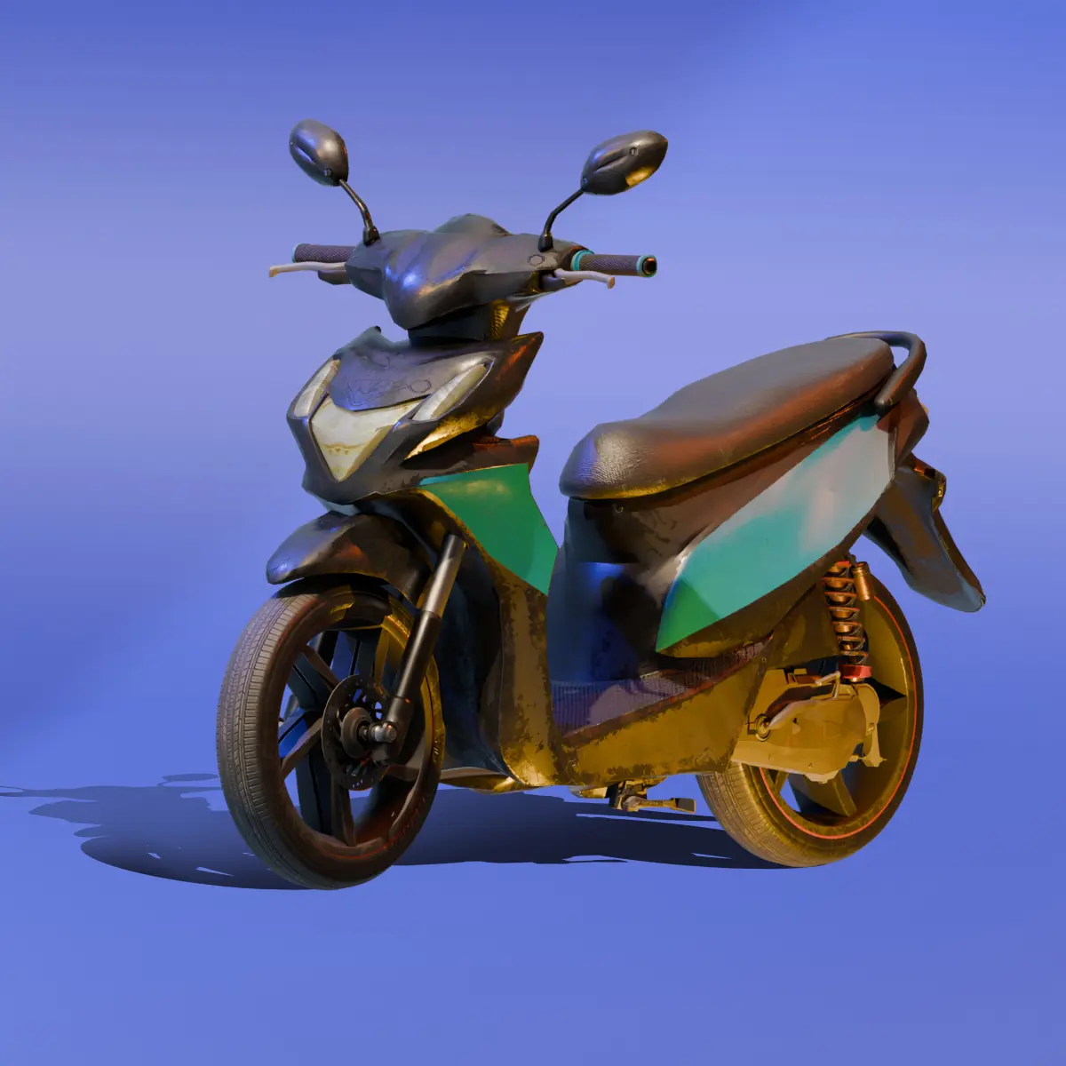 Automatic Motorcycle Blender Low Poly complete with Rigged and Textured. Made using Blender version 4.0, Render Cycles (1920x1920). Adobe Substance Painter for Texturing.