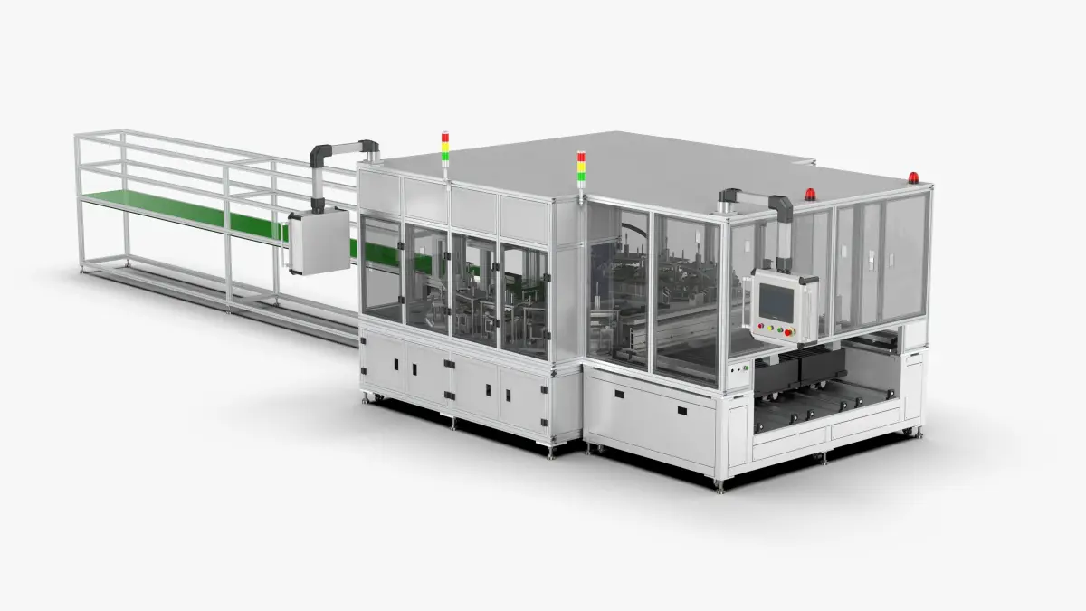 The 3D model of the complex optical cat circuit board automatic handling and testing equipment This set of complete non-standard equipment drawings is designed with SolidWorks. Its main functions are robot handling of circuit boards, visual inspection, product testing, and finally finished product blanking. The structure of the drawing is very complicated and worth learning.