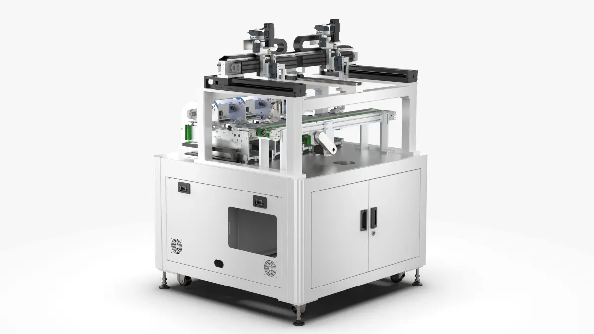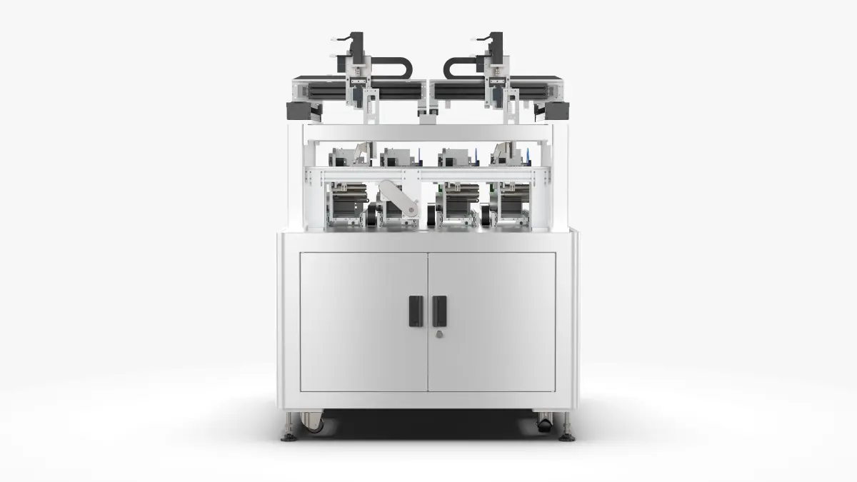 This equipment is an online four-label labeling machine. In the production of some products, labeling processing is required. The labels are manually loaded into the feeder, the carrier flows into the equipment, jacked up and positioned, and the labeling mechanism takes the label. There are four feeders inside the device, which can be compatible with labeling of different products.