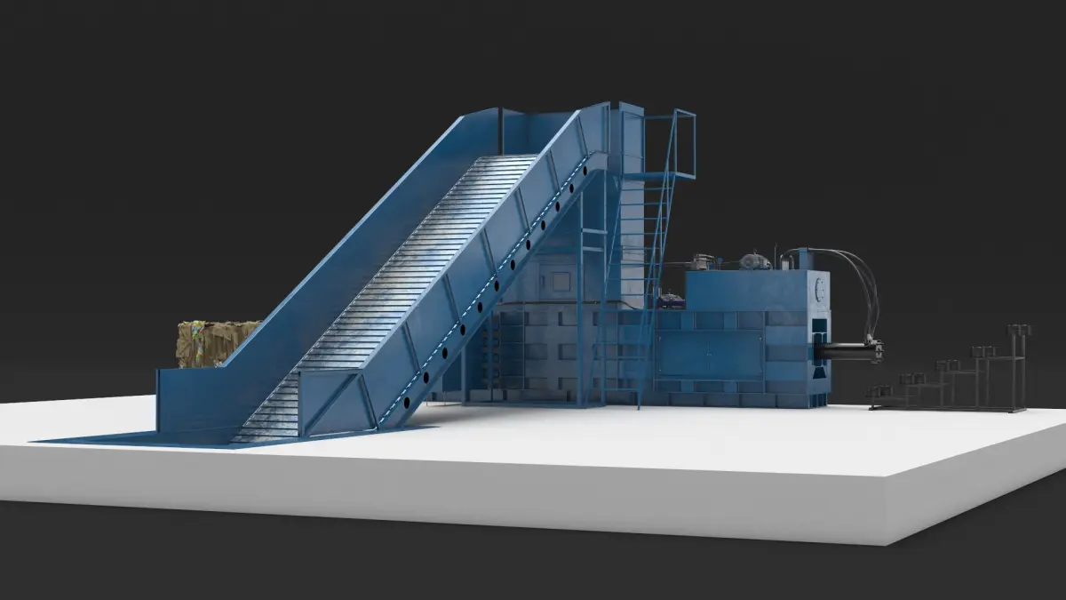 Automatic Horizontal Baler Blue is a three-dimensional model of industrial waste press baling machine used for waste pressed briquette making.