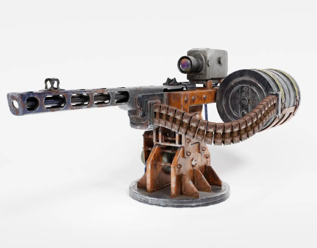 - This product consist one lowpolygon ready model of Automatic machinegun turret post-apocalypse