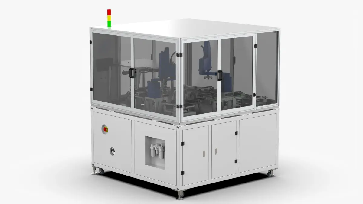 Mobile phone LED assembly dispensing testing equipment, the thickness of the table is 30mm, the lower frame is made of square tube welded door with stainless steel door, the upper frame is made of extruded aluminum frame, and the door is made of transparent acrylic. All the doors of the upper rack are equipped with sensors, and there is an alarm prompt when the door is opened. The equipment is equipped with an air storage tank, an air filter unit, etc. The turntable is driven by an 8-segment divider to complete the feeding, dispensing, fixing, testing and other stations, and the production equipment is running stably.