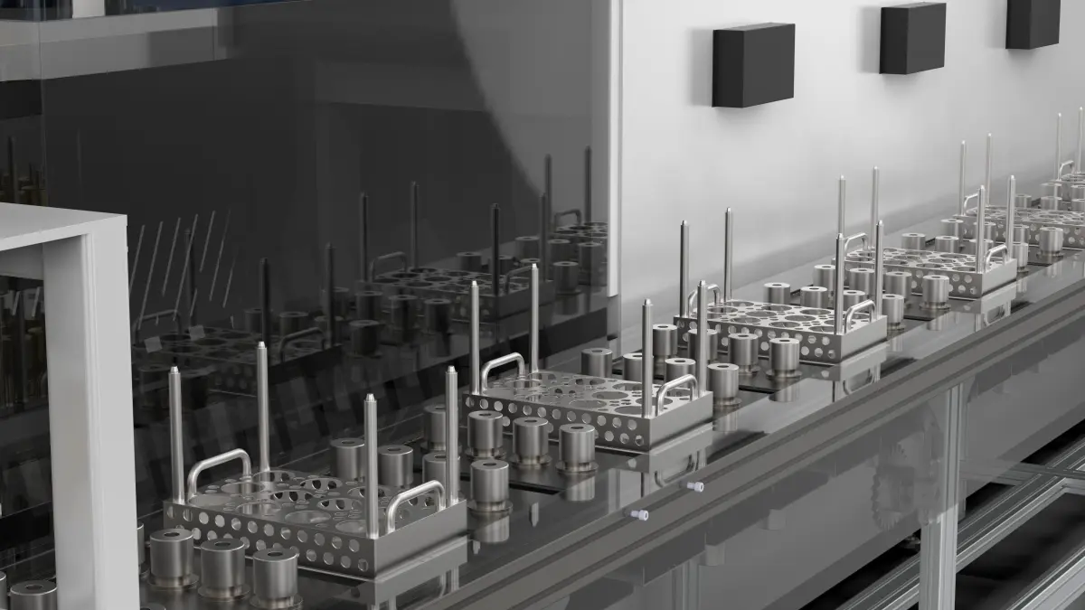 The rotor of the rotor cover heating furnace is manually loaded to the board, the side clamp is positioned on the board, the module is grabbed and transferred into the carrier, and the fixture is pressed down to ensure the same height as the rotor, and the module is then grabbed to be heated. After the furnace is completed, the module grabs the rotor and unloads the material, the fixture is reflowed.