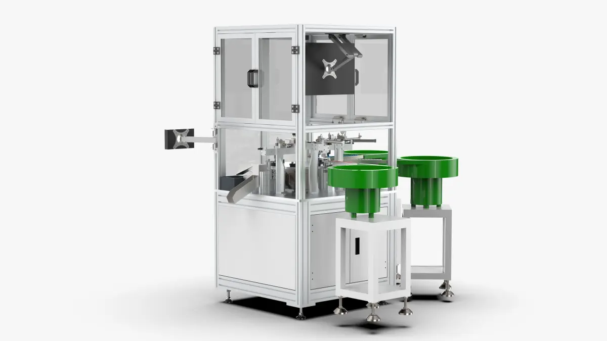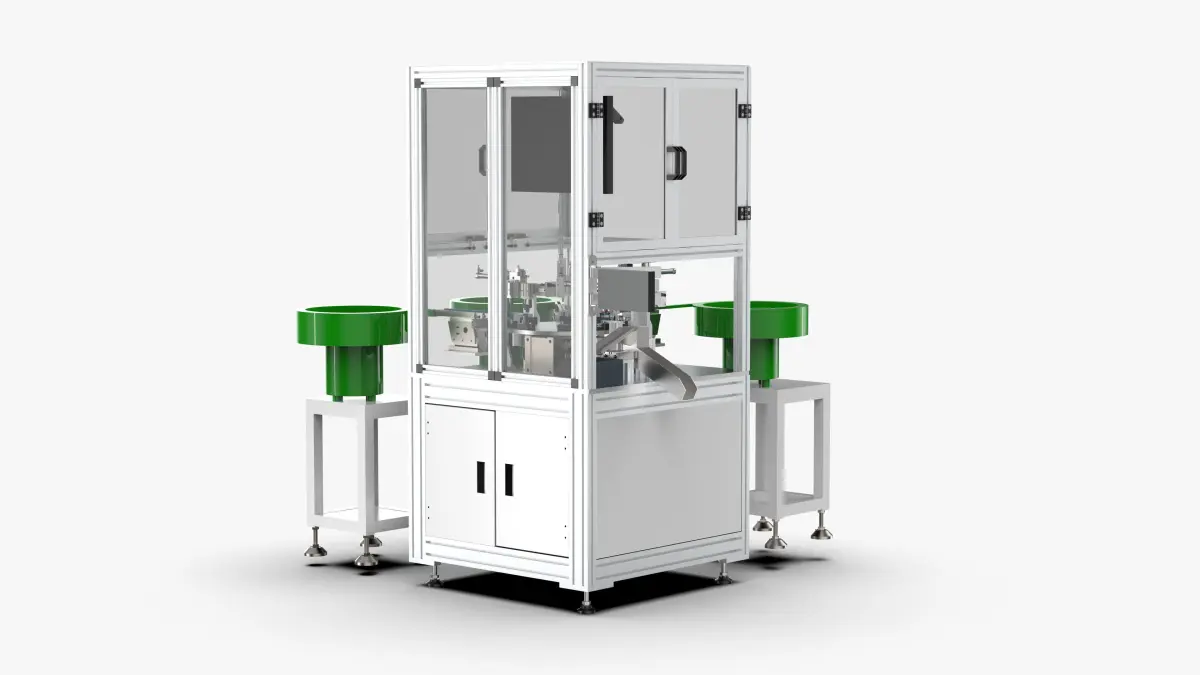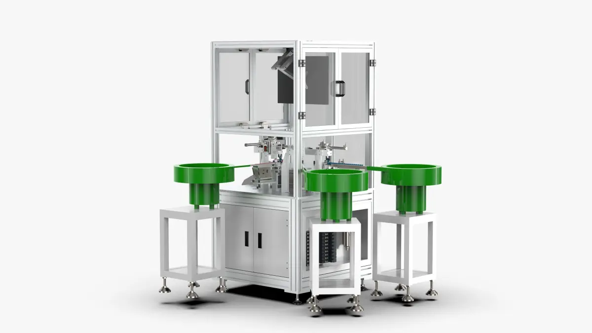 This drawing is a new energy connector assembly equipment, which contains solidworks3D drawing. The design of this machine adopts automatic feeding of product accessories, assembly, visual inspection, and separation of good and bad products.