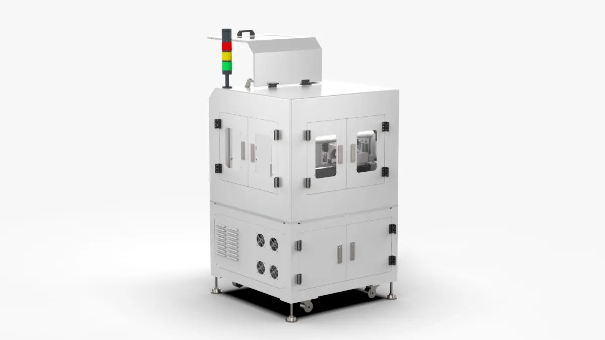 Automatic peeling and film laminating machine:Roll material is discharged, automatic peeling is performed, and the position is corrected by dual cameras to carry out film lamination.