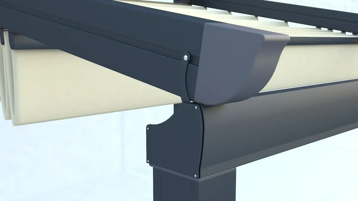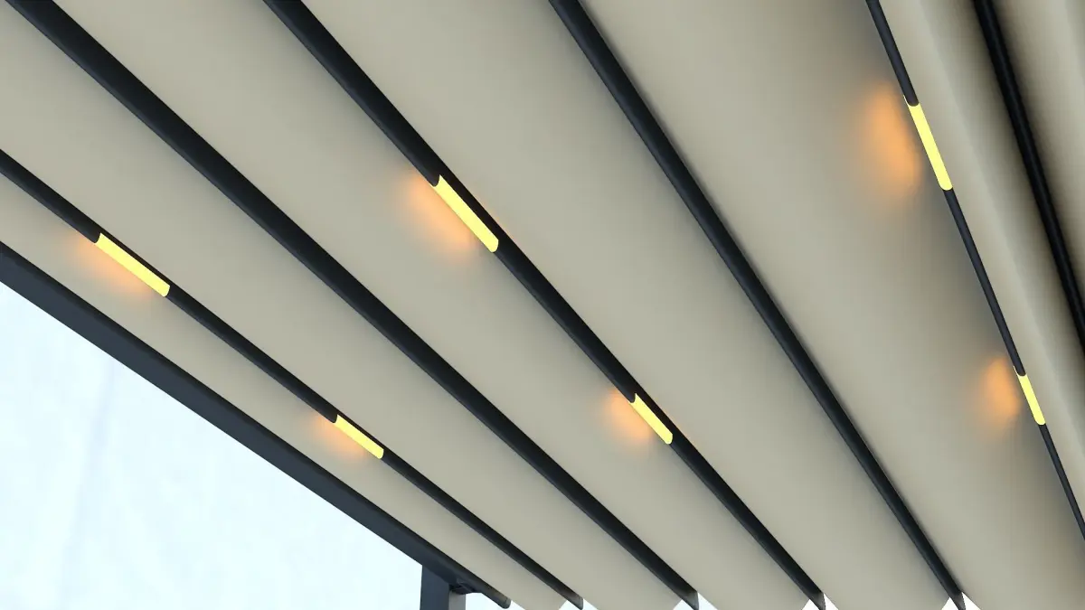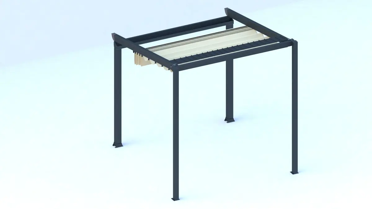 an realistic automatic pergola with the smallest detailes with the lightning and all the inustallation details containes rays aluminum profile water rays and all the automatic pergola features that you need for your design