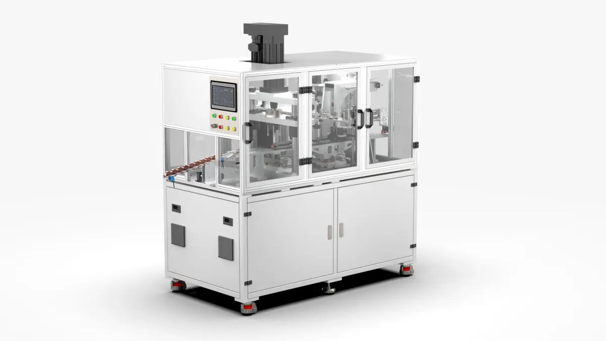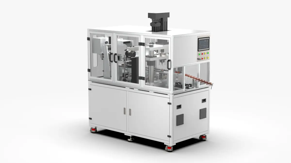 This equipment is used for the assembly and production of rotors in the micro-motor industry. The main products used are 95 series rotor specifications of DC brushless motors. The whole machine mostly adopts servo mechanism. The characteristics of the equipment are that the rotor shaft storage mechanism has a large storage capacity. At the same time, the vertical shaft entry mechanism is conducive to the rotor shaft sliding into the rotor core. At the same time, the pre-threading mechanism presses the rotor back through the cylinder. In the iron core, the efficiency of the rotor shaft passing through the shaft hole is greatly improved, and the abnormal operation of the equipment is reduced. The transfer mechanism part adopts linear synchronous transfer, and the servo module facilitates machine adjustment. The riveting part uses a 5-ton equivalent servo electric cylinder for riveting. The beat of the whole machine is controlled at 5s, and the riveting depth and riveting pressure are fed back and recorded in real time through the pressure curve.