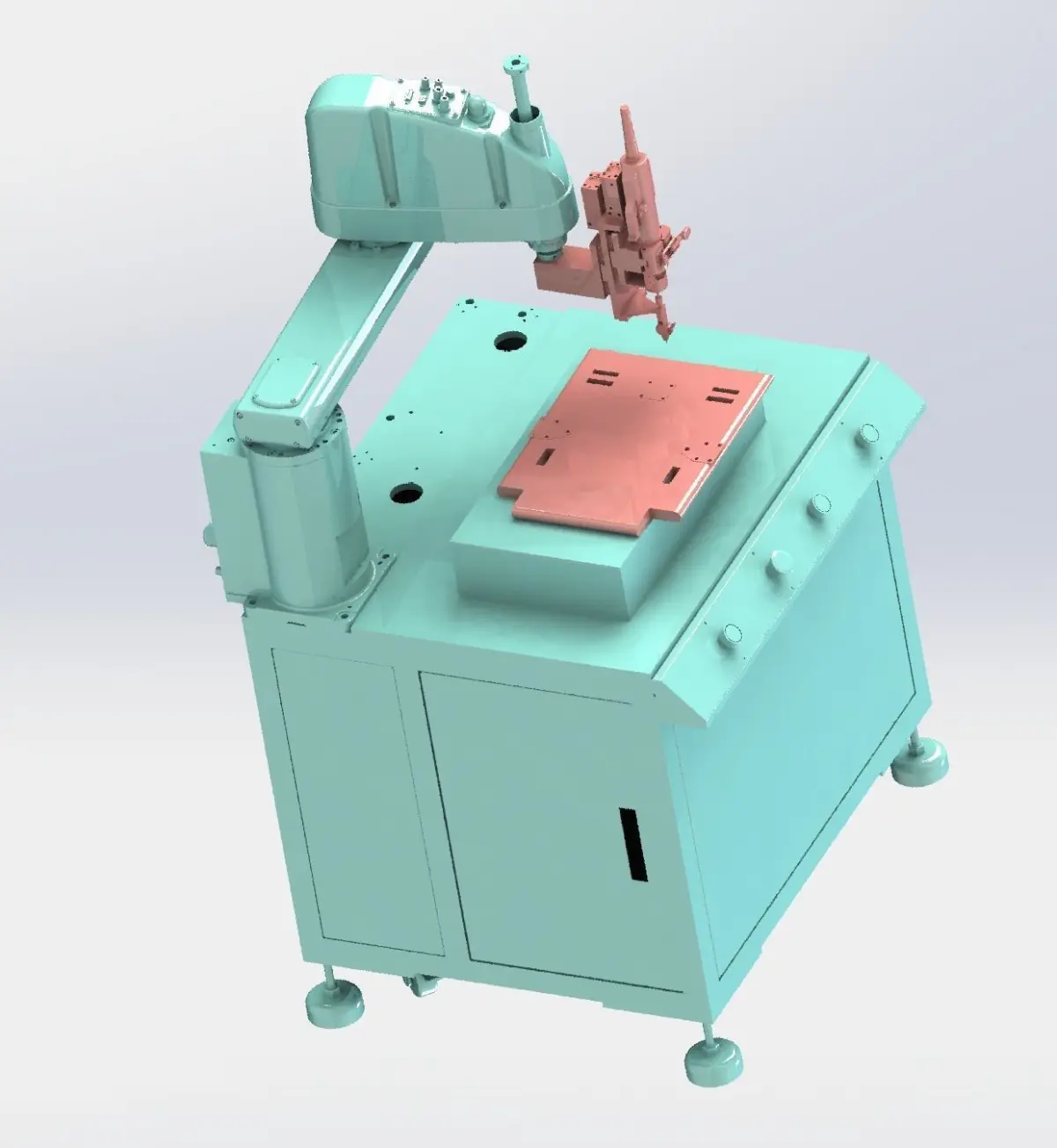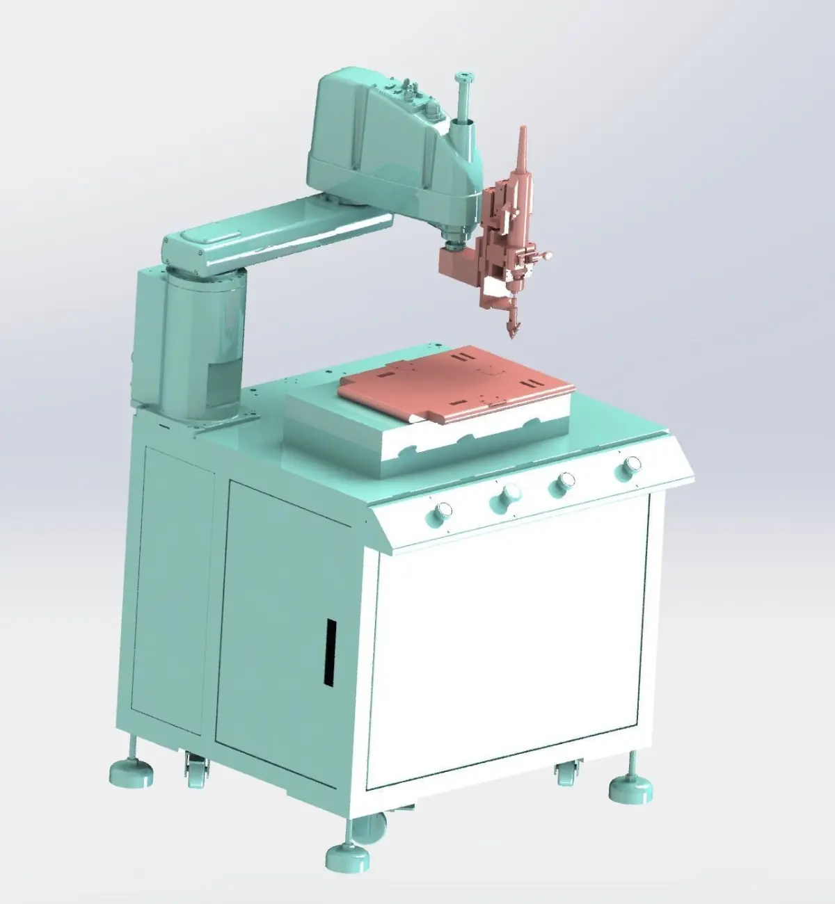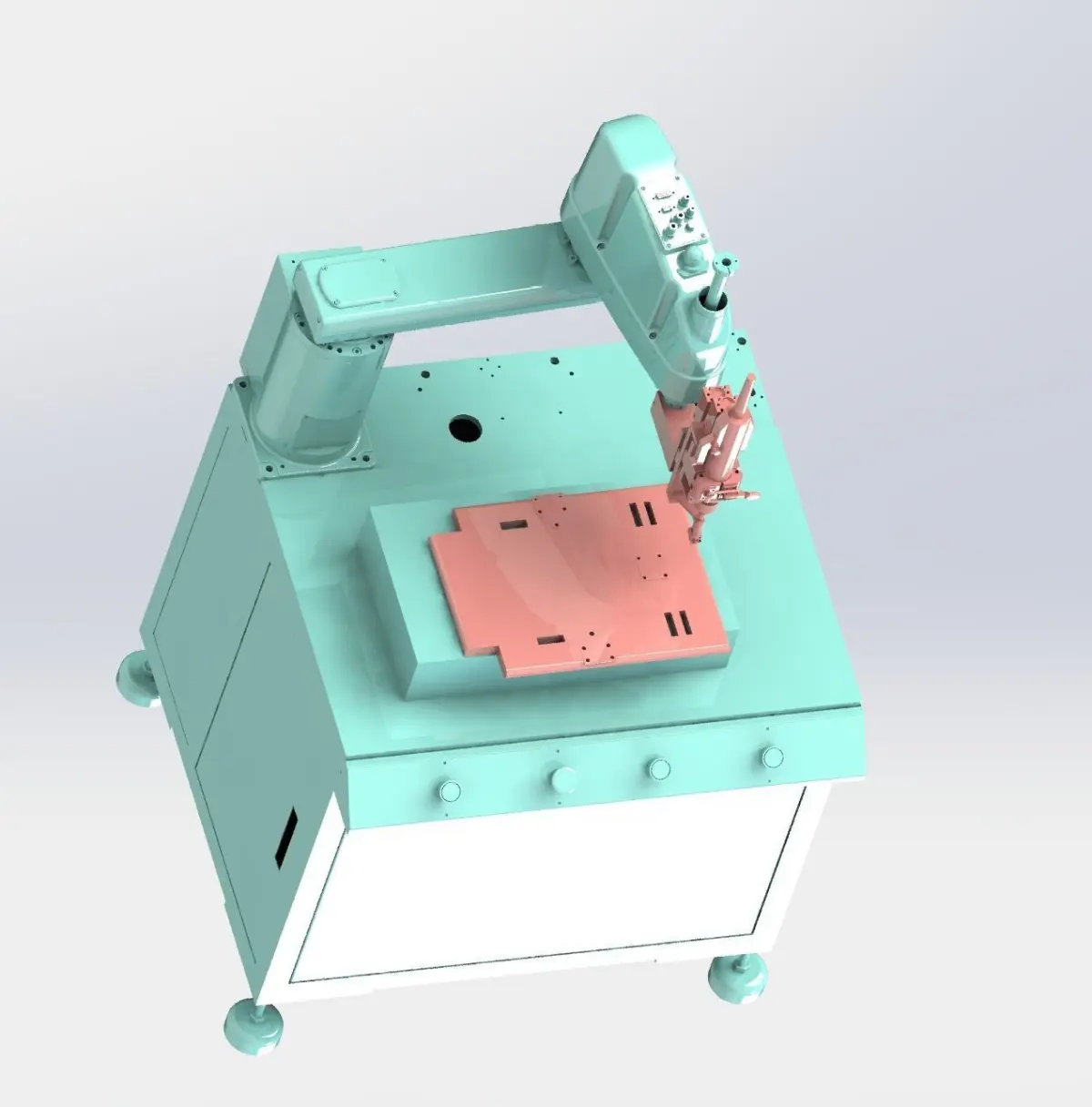 Mechanical hand automatic screw machine, the machine screw lock through four axis robot, automatic lock screw process on products is conducted Mechanism include 1.Mechanical structure 2.Four axis manipulator