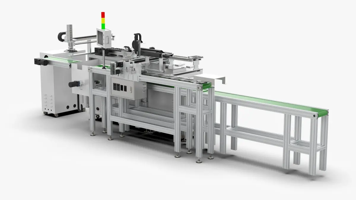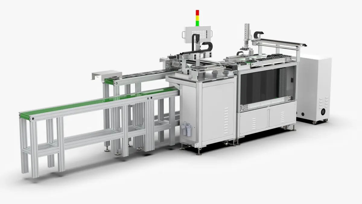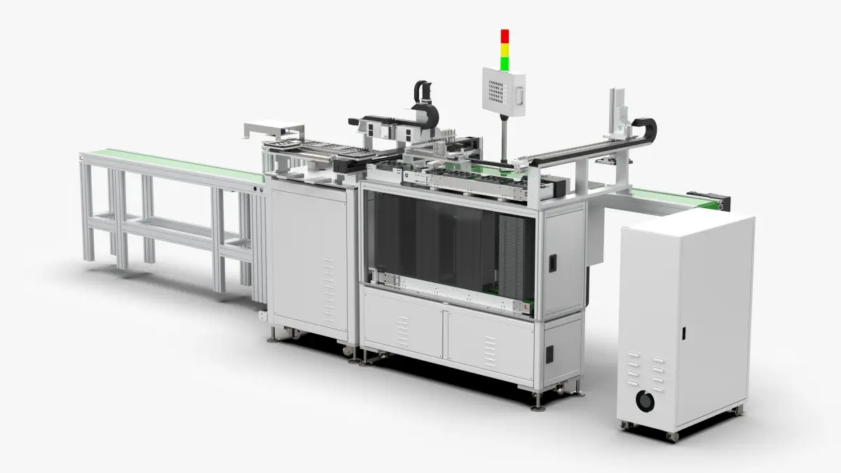 Test the feeding and conveying technical secondary equipment, the Tray is supplied by the wire body and flows into the equipment for internal positioning, the module grabs and positions the material, the carrier is fed by the equipment on the machine to the wire body, and the module XYZ vacuum adsorption module absorbs the pendulum Put it in a fixed position for positioning.