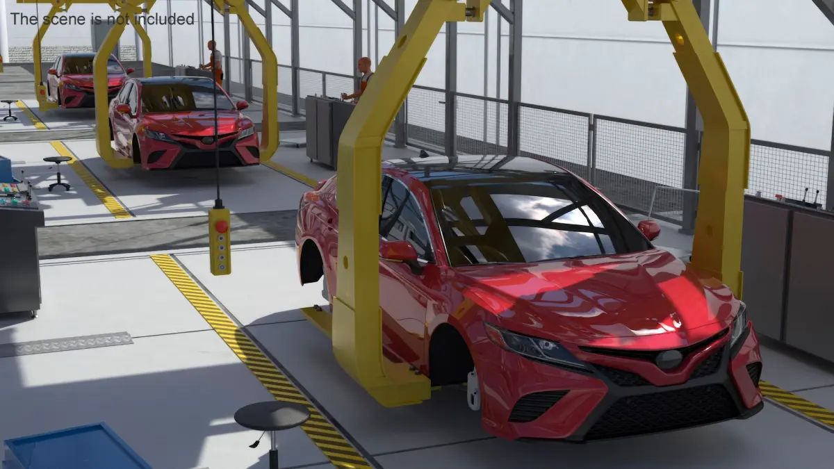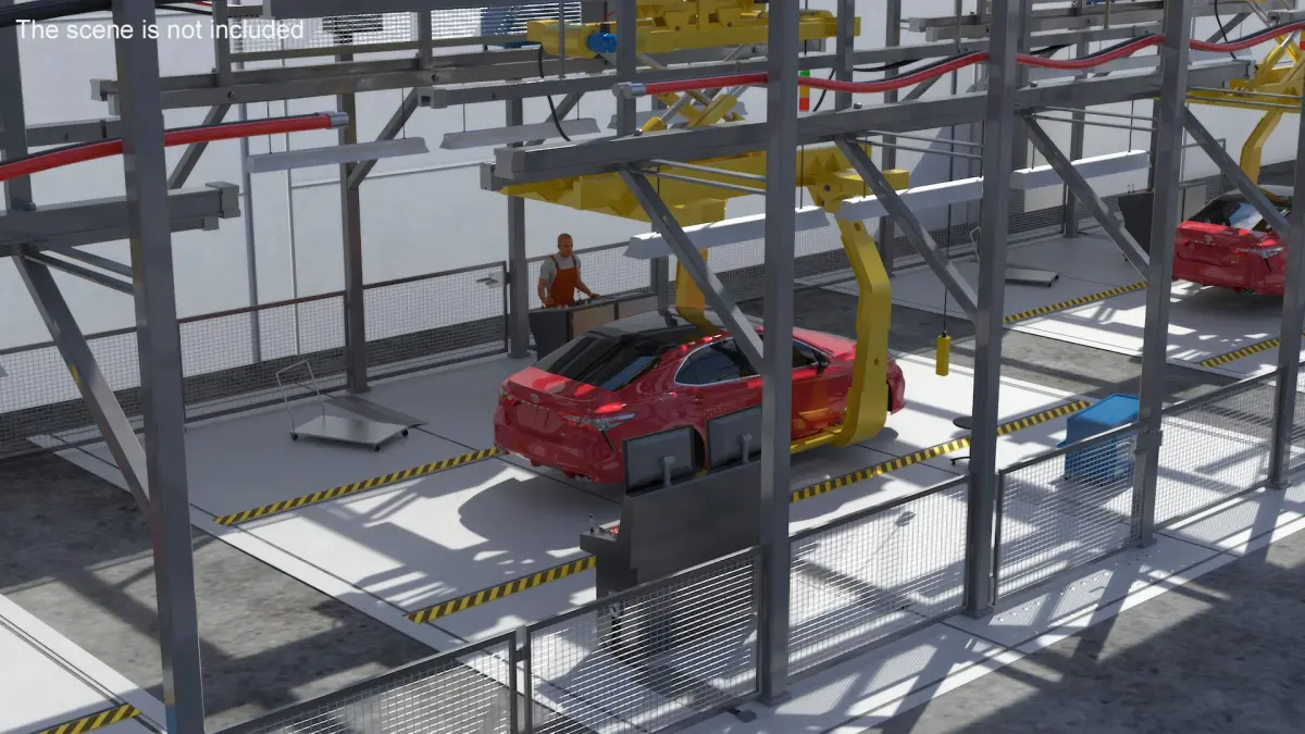 Automatic Toyota Body Line and Worker is a high quality, photo real 3d model that will enhance detail and realism to any of your rendering projects. The model has a fully textured, detailed design that allows for close-up renders, and was originally modeled in 3ds Max 2020 and rendered with V-Ray. Renders have no postprocessing!