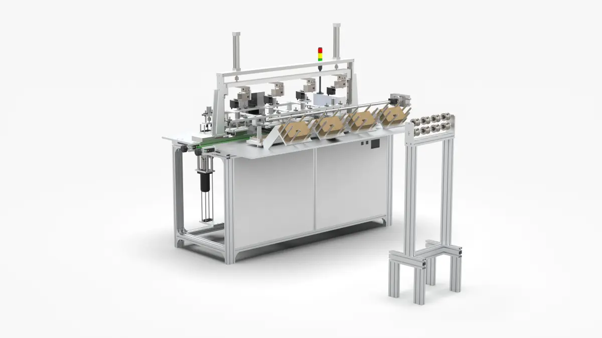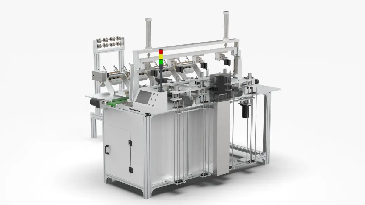 An oval lid lamination equipment for wet tissue packaging bags, automatic packaging bag, automatic plastic shell, automatic dispensing, automatic unloading.