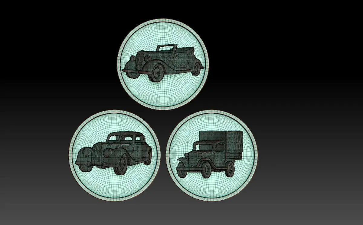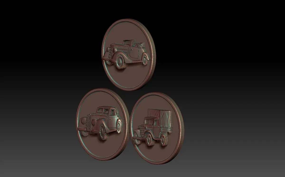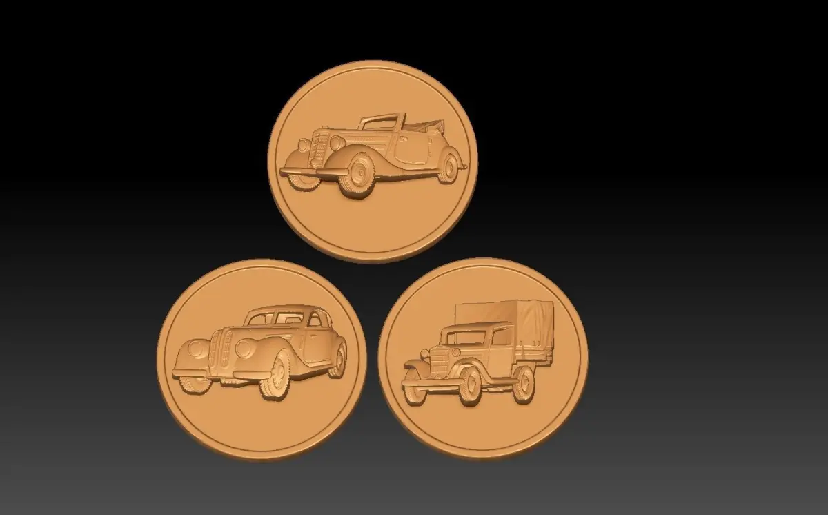 automobile coin with three cars 3D print model
