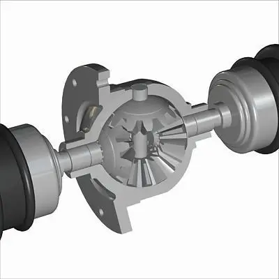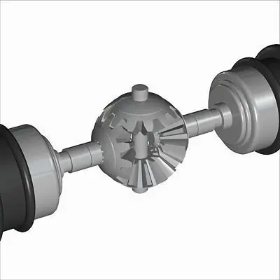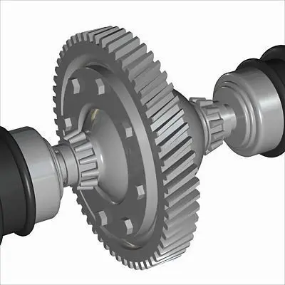 Detailed automobile differential gearbox modeled in Carrara 4.0 and provided in .CAR, .3DS, and .OBJ formats. Present on automobiles to allow the wheels to rotate at different speeds when turning, the differential is modeled in full and with the housing cutaway to illustrate the mechanical components of the system.