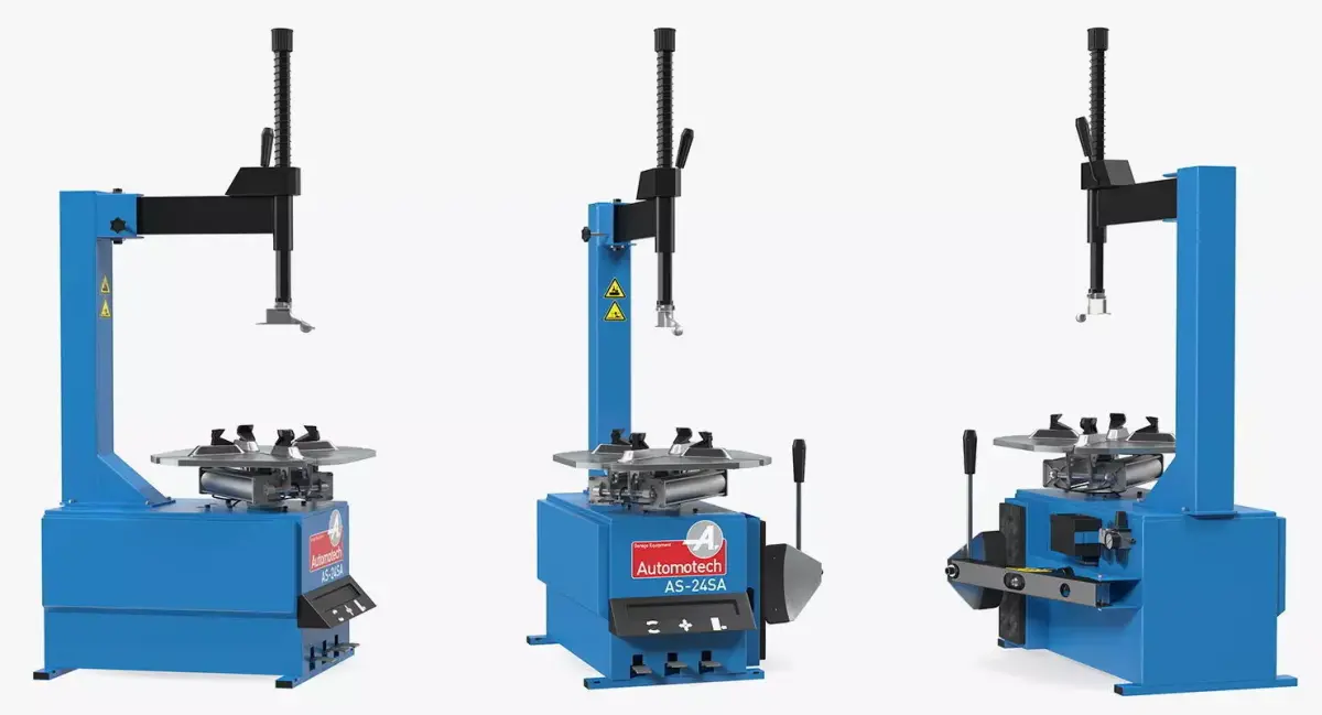 Automotech AS-24SA Semi-Automatic Tyre or tire Changer a machinery used to help dismount and mount tires of automobile wheels.