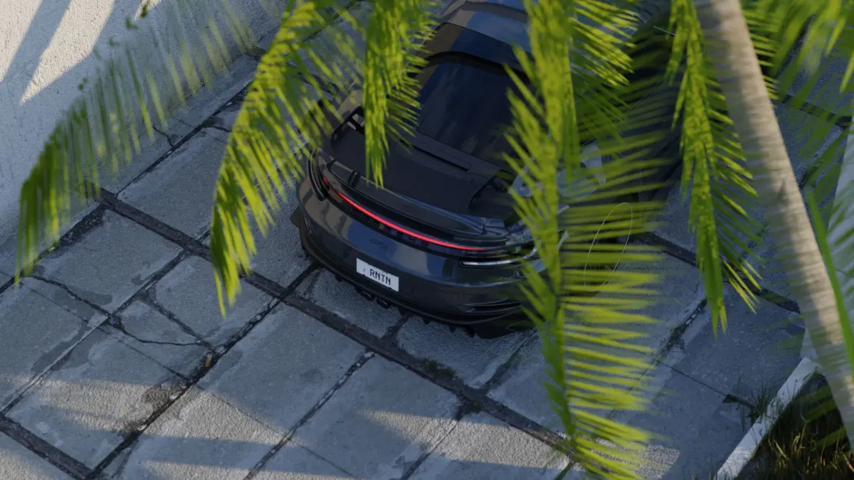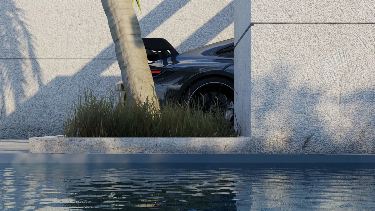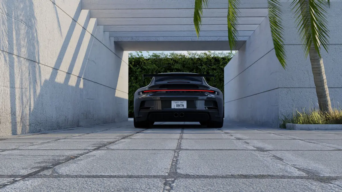 Greens are created with particle system. There is no problem. Just put your car and render.