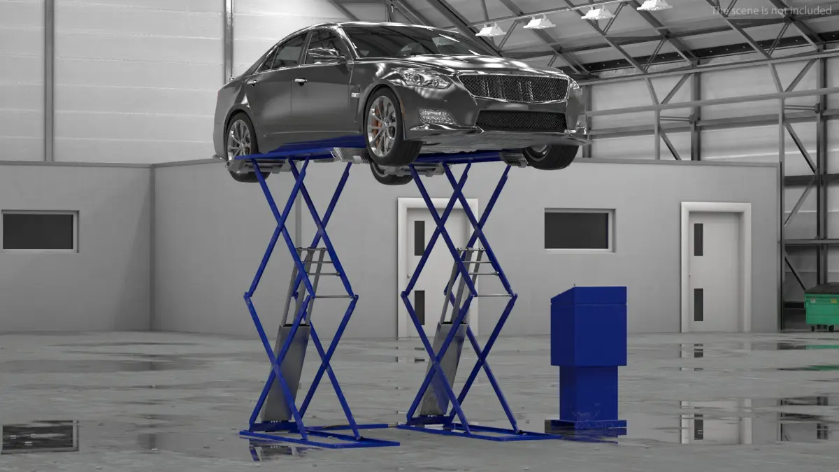 Automotive Scissor Lift and Sedan Rigged is a high quality, photo real 3d model that will enhance detail and realism to any of your rendering projects. The model has a fully textured, detailed design that allows for close-up renders, and was originally modeled in 3ds Max 2014 and rendered with V-Ray. Renders have no postprocessing!