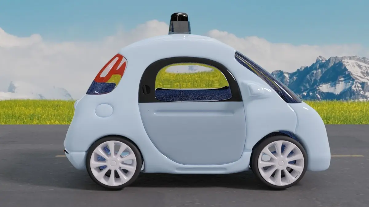 An autonomous driving car. The future for metropoltan cities.Great for futuristic enviroments and landscapes.