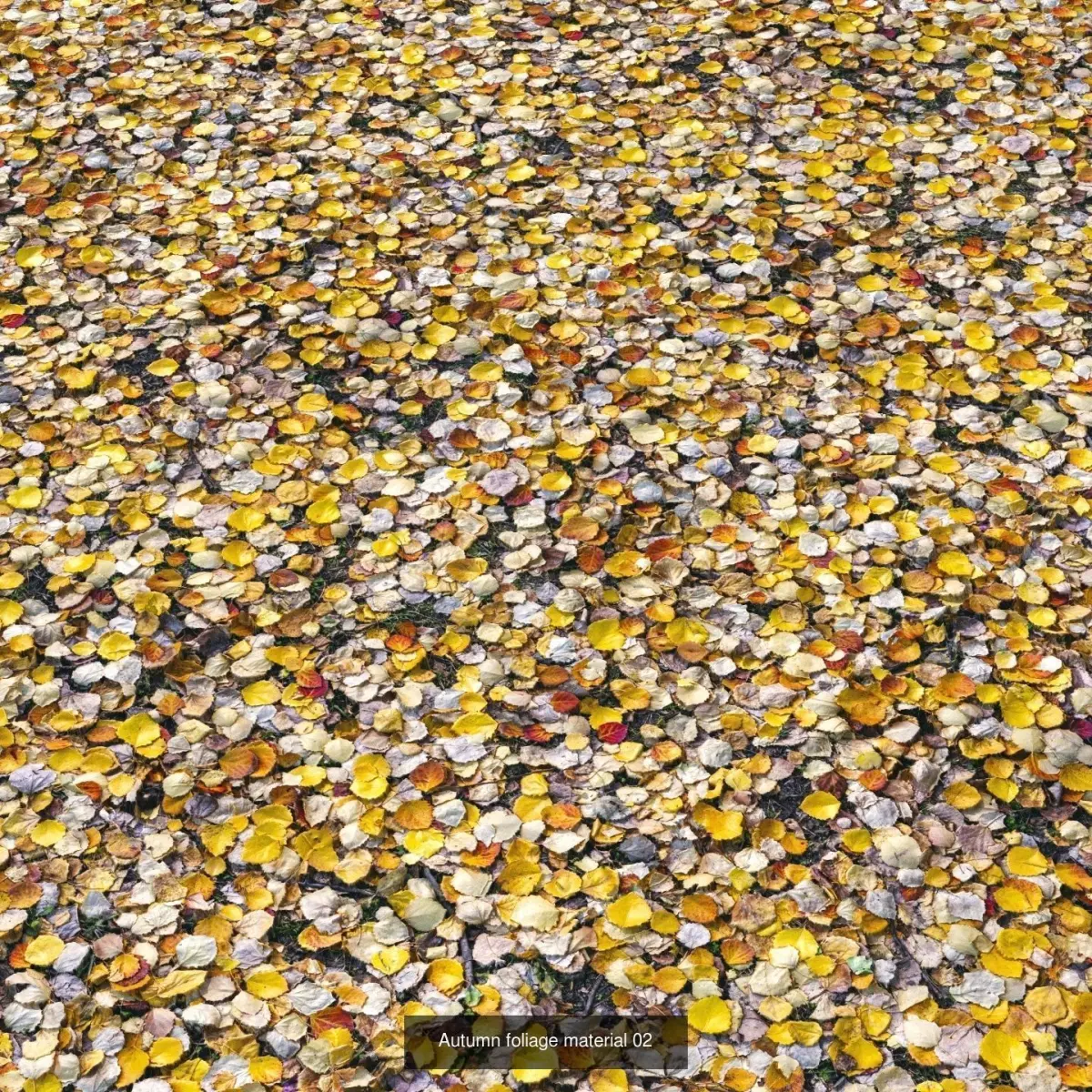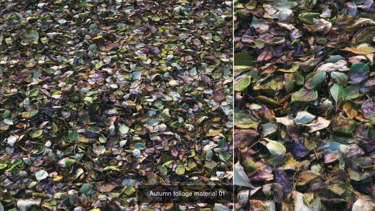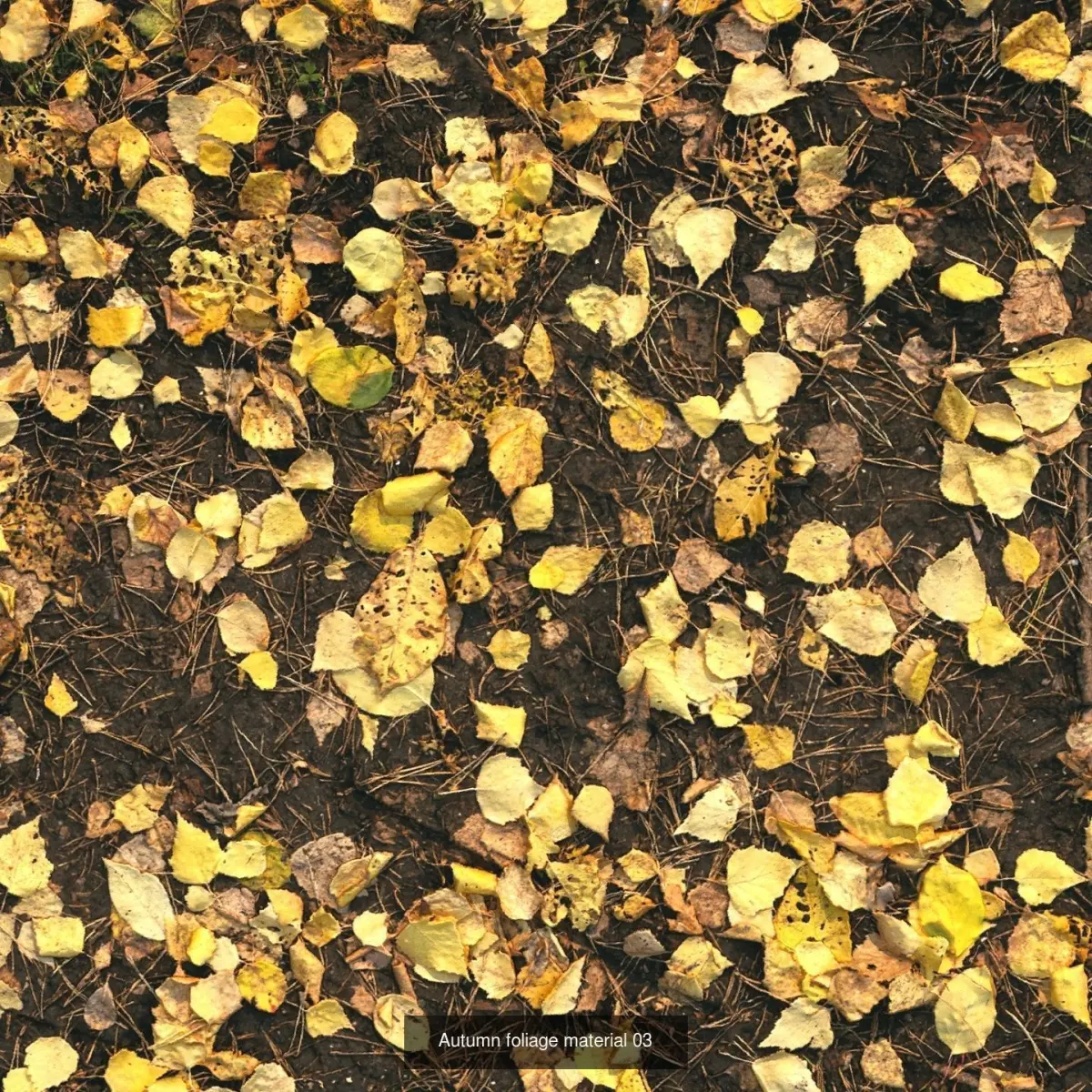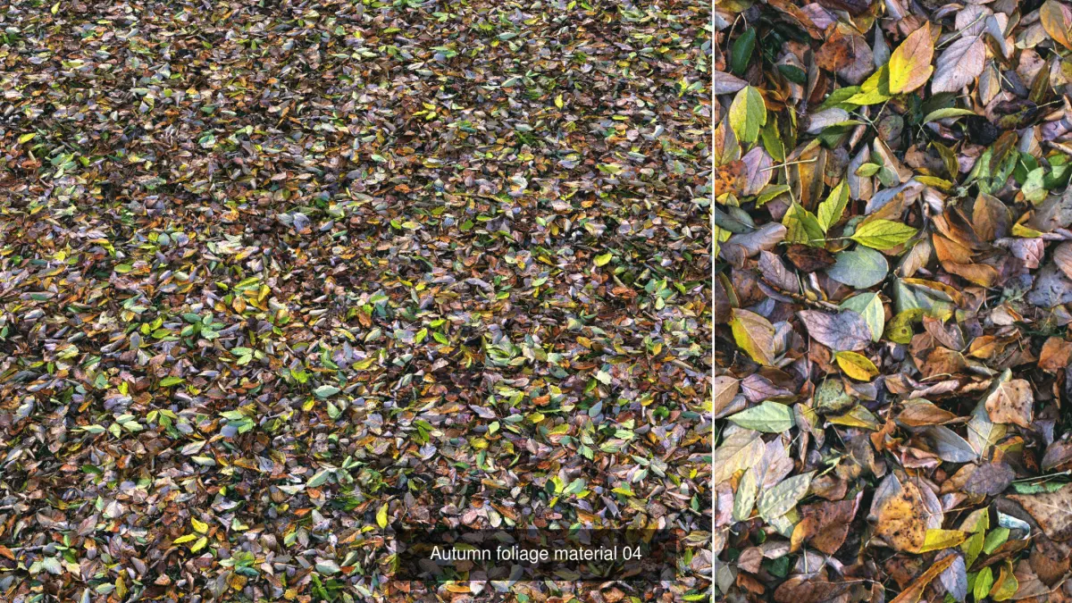 Highly detailed seamless material of various soils with fallen autumn leaves from different trees.