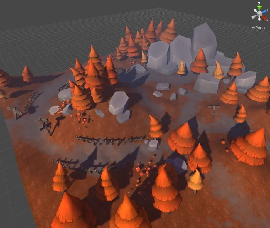 It includes ground textures, trees, rocks, and other small things to give it personality.