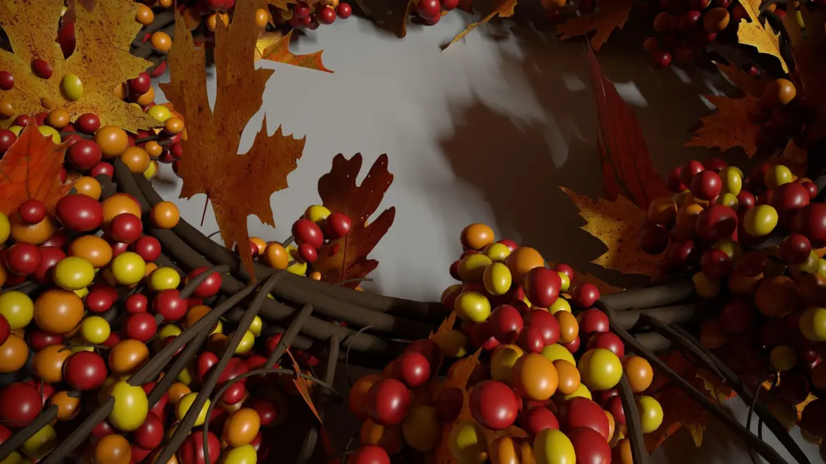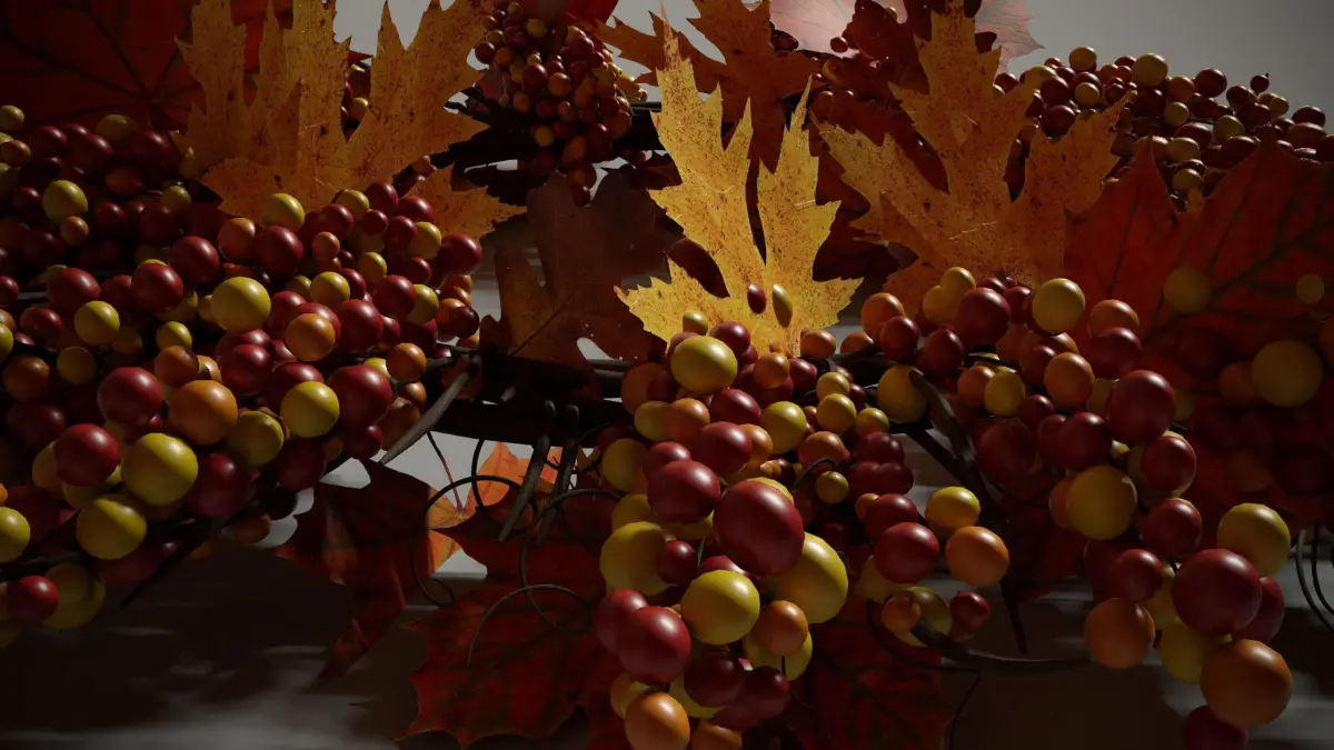 Autumn wreath with leaves and berries. There are files: c4d, obj, fbx.