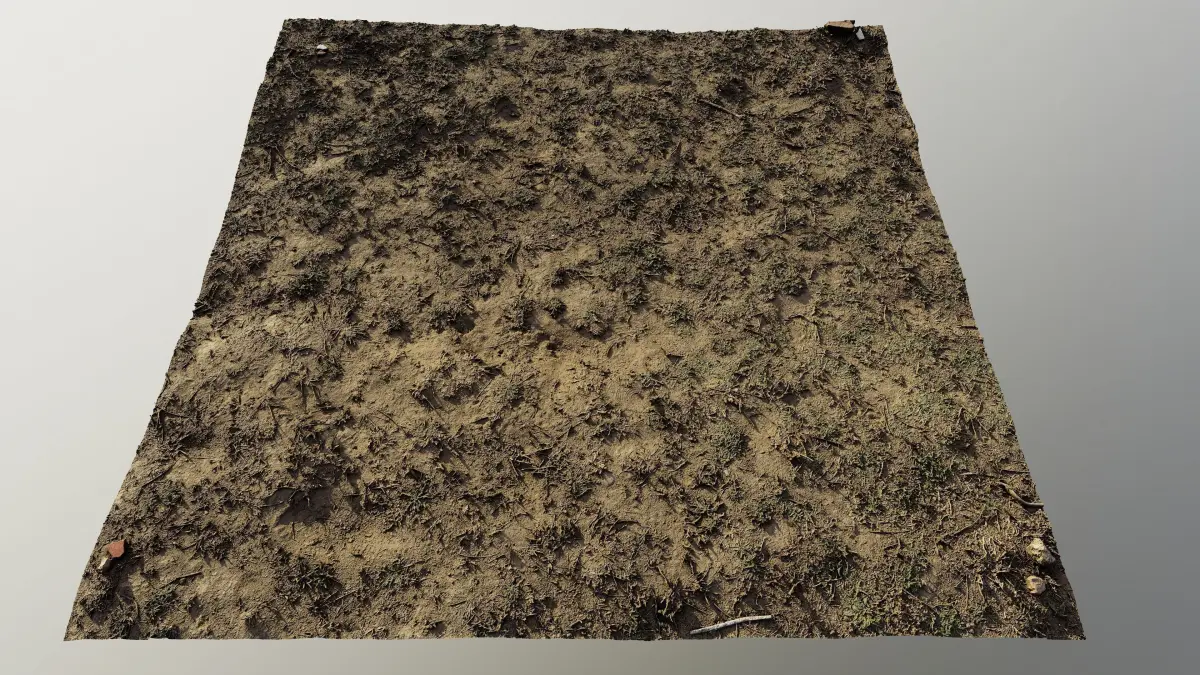 Hi res photoscanned soil/ground area covered with grass,sand and gravel. The photoscan was made with several hundreds of pics to get the fine details. Model comes with 16384X16384 hires Diffuse, normal, occlusion, detail_normal maps. Vertices: 2504827 Polygons:5000000 . Ideal for baking textures from or for use as high detail mesh. obj format