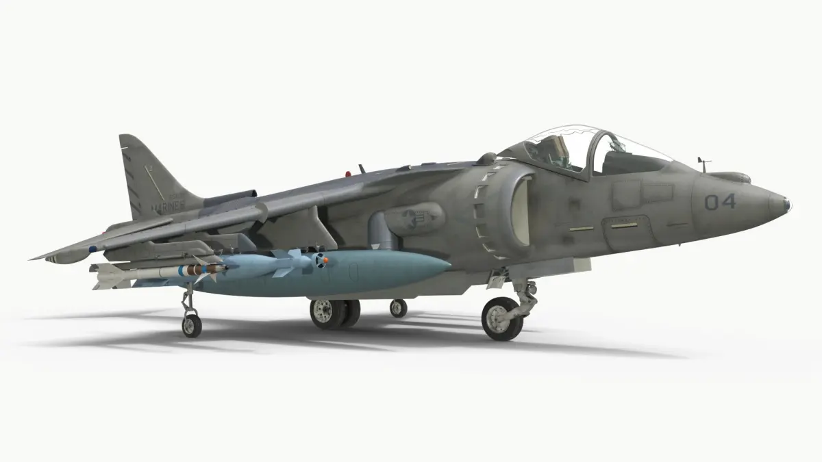 AV-8B Harrier II Attack Aircraft Gray is a high quality, photo real 3d model that will enhance detail and realism to any of your rendering projects. The model has a fully textured, detailed design that allows for close-up renders, and was originally modeled in 3ds Max 2020 and rendered with V-Ray. Renders have no postprocessing!