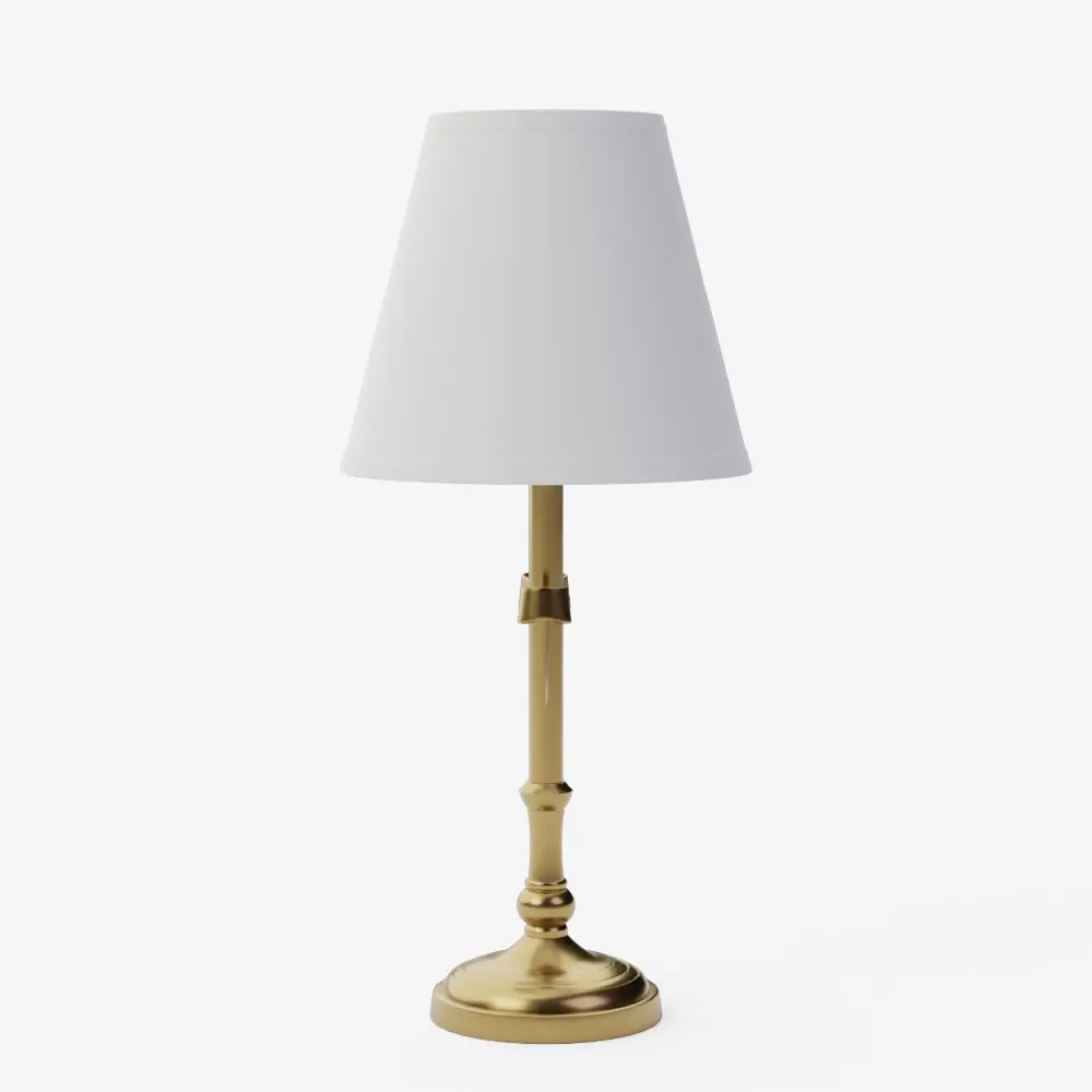 Realistic Materials: Includes 2K PBR textures for metallic finishes (brass, gold, or chrome variants) and linen fabric shade with subtle transparency.