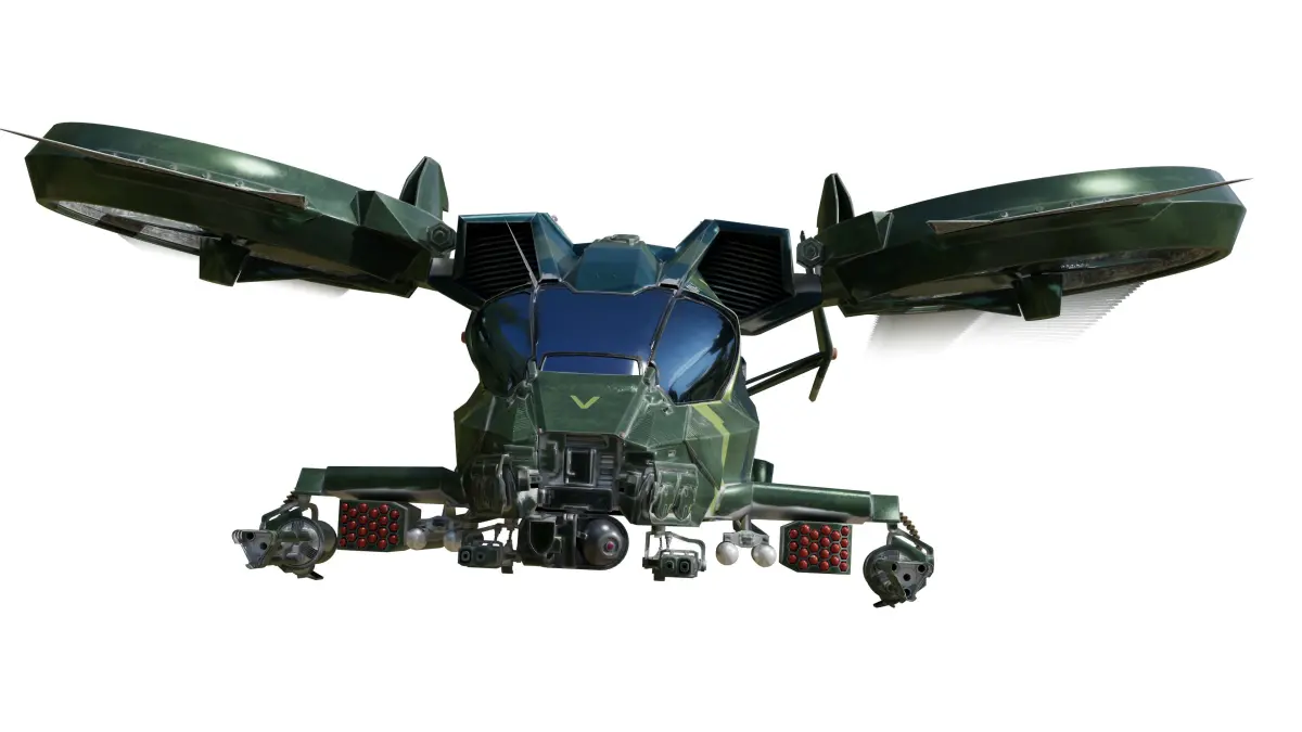 - Uv-mapped and textured using UDIM textures in 4K resolution -Materials are PBR with baked textures for diffuse, ambient occlusion, metalness, roughness, bump height and normal-Rigged with empty controls for rotors and -Modelled in Blender 3.5, textured in Photoshop-Scale, rotation and locations are applied-All modifiers are applied-Animated spinning rotor blades