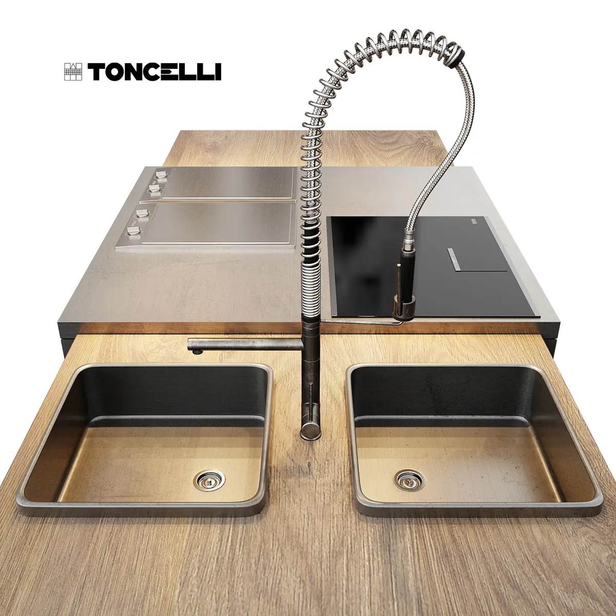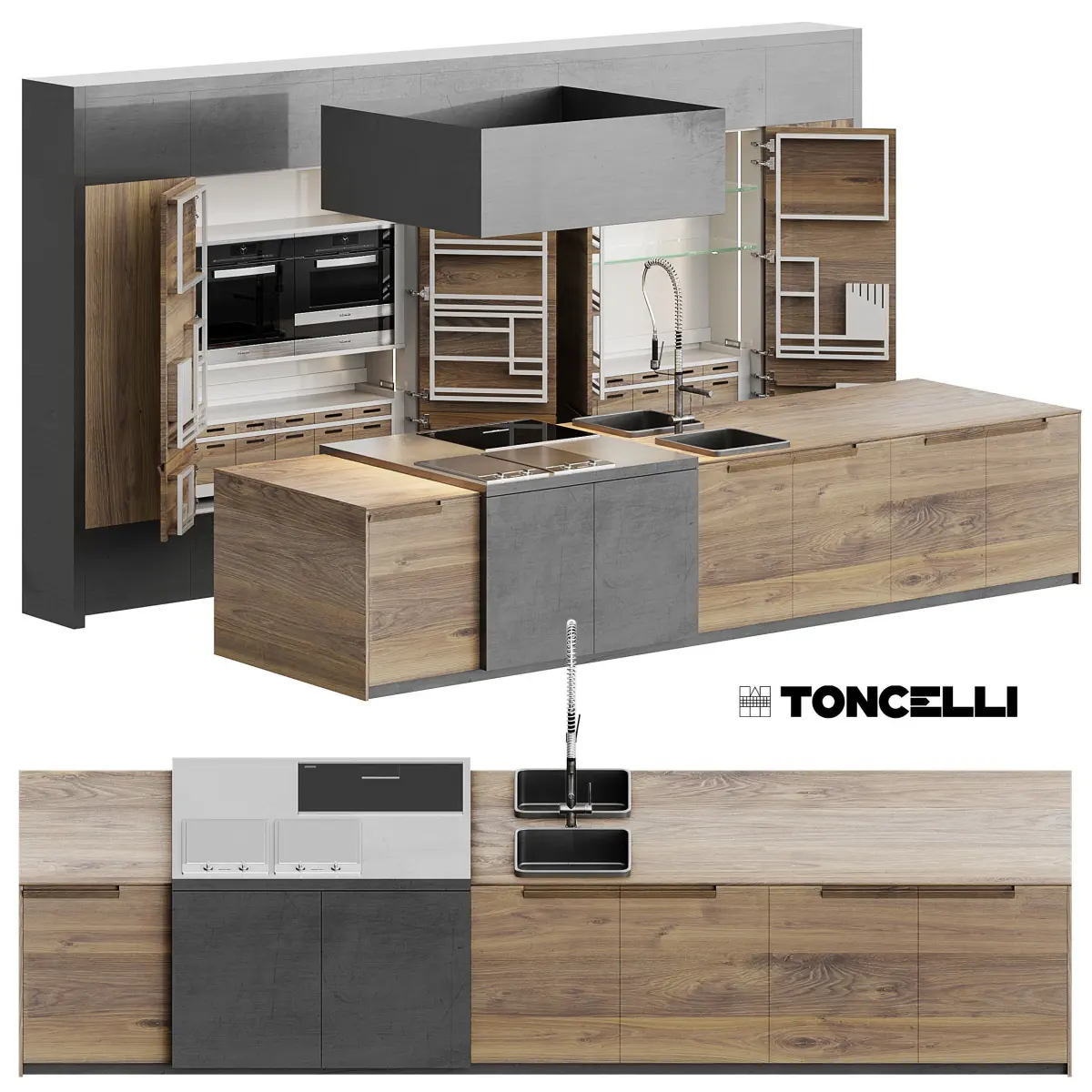 Toncelli Essence kitchen with Miele appliancesCooktop Miele KM 6395 InductionElectric stove Miele CS 1112 E ProlineHood Miele DA 2698Oven Miele H6800BP