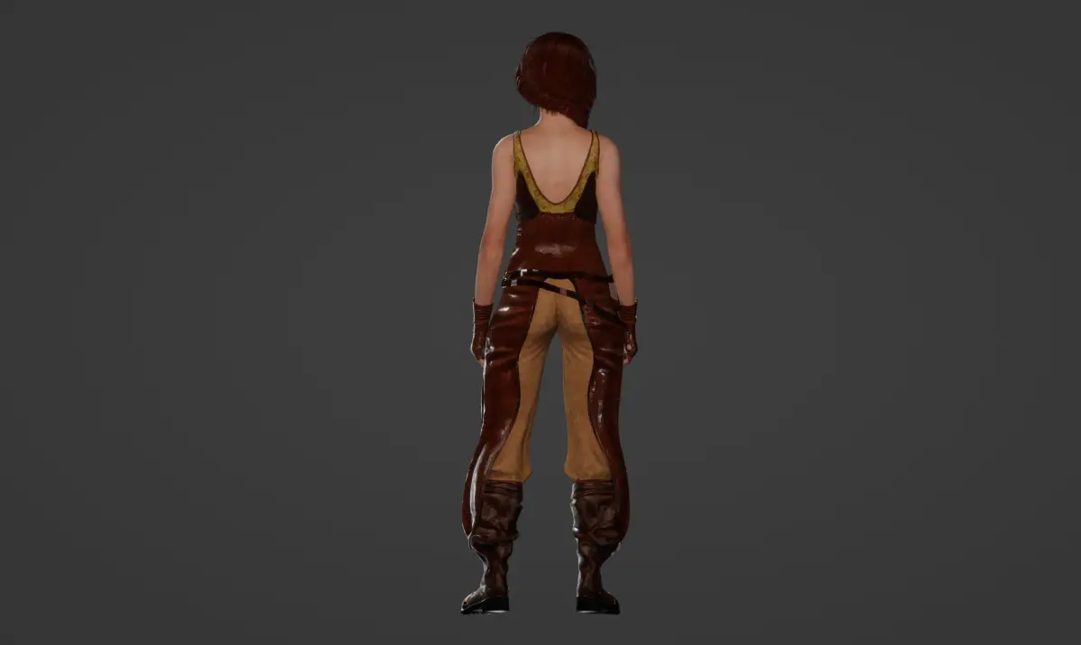 Ordinary pretty medieval woman in antique brown leather clothes