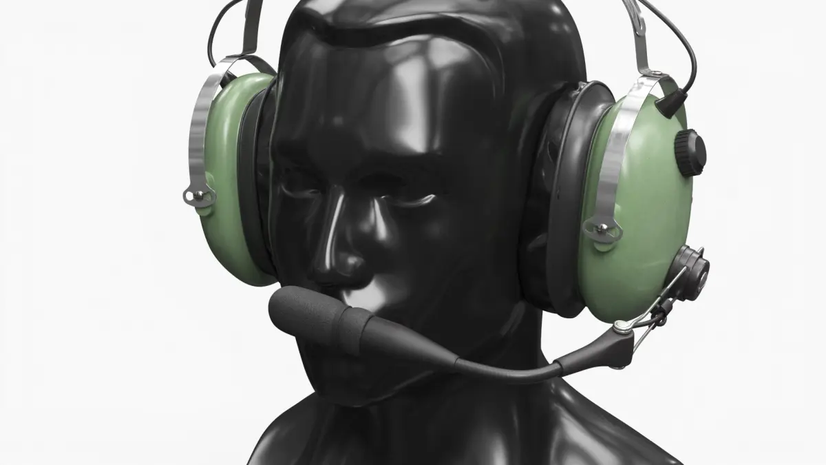 Aviation Pilot Headset on Mannequin Green is a 3d model of a communication headset designed for aviation professionals, featuring detailed components for realistic visualization.