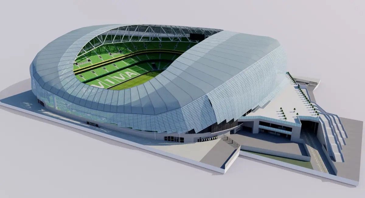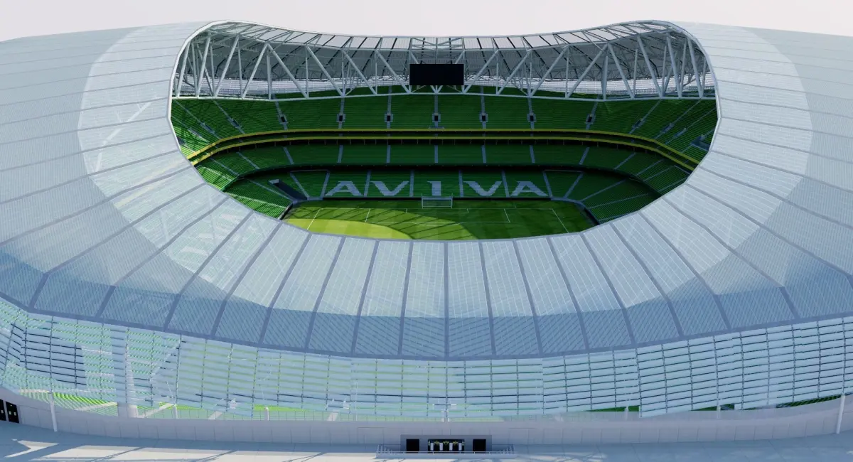 Aviva Stadium (also known as Lansdowne Road or Ireland's stadium; Irish: Staid Aviva) is a sports stadium located in Dublin, Ireland, with a capacity for 51,700 spectators (all seated). It is built on the site of the former Lansdowne Road Stadium, which was demolished in 2007, and replacing it as home to its chief tenants: the Irish rugby union team and the Republic of Ireland football team. The decision to redevelop the stadium came after plans for both Stadium Ireland and Eircom Park fell through.The stadium will host the Euro2020 (Euro2021). Model prepared to have a soccer and rugby playing field.