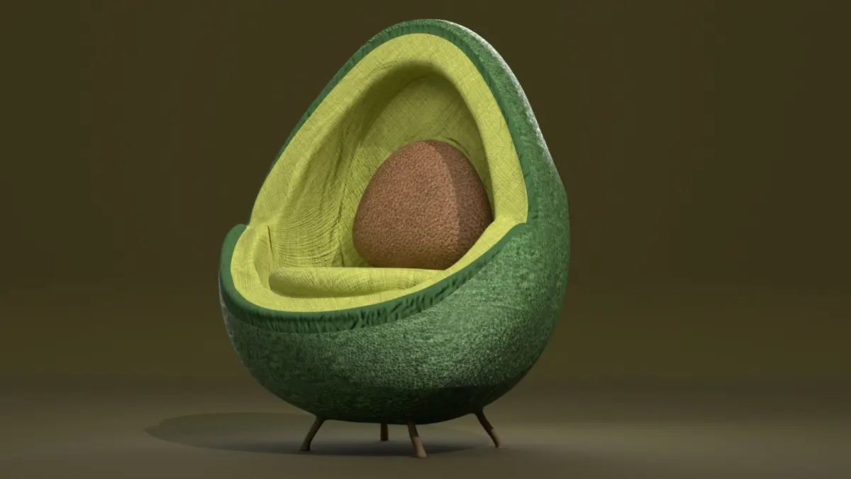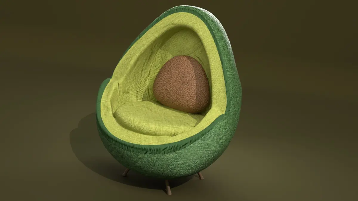 Designer chair in the shape of an avocado + bland + fbx + obj + stl + glb, mtl + render