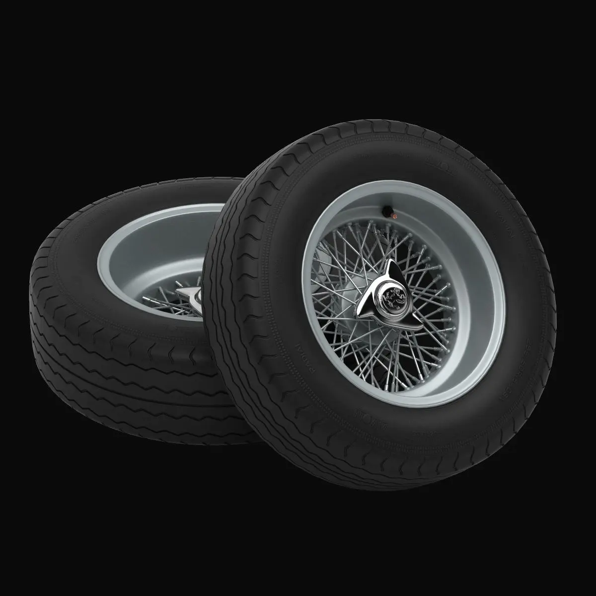 3D printable Solidworks, STEP and STL files included containing only the two detailed wheels, with 3 pieces each (tire, rim and spinner) and some SVG files with bumpmaps for the tire sidewalls and spinners if you want to use them for displacement (3D texture).